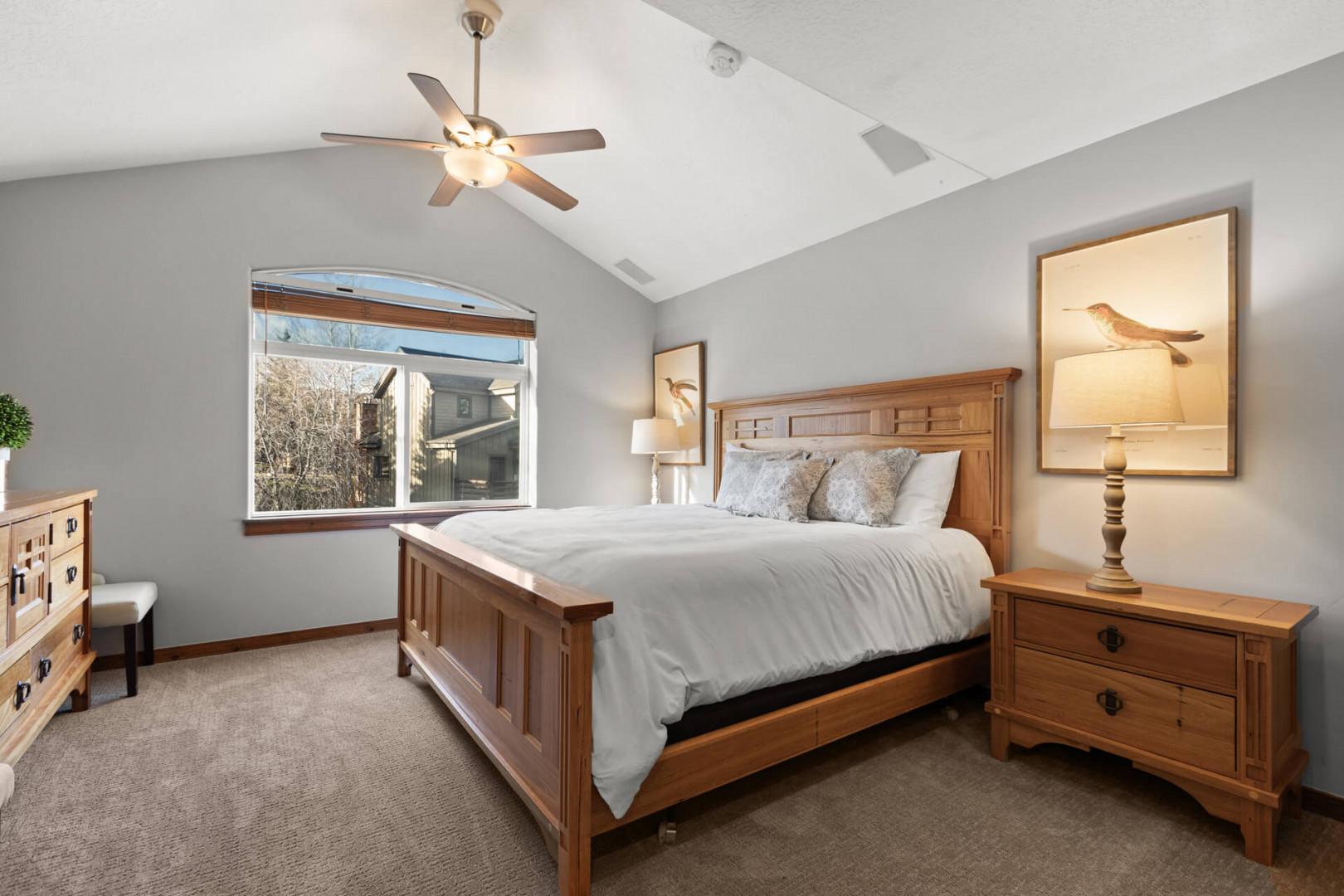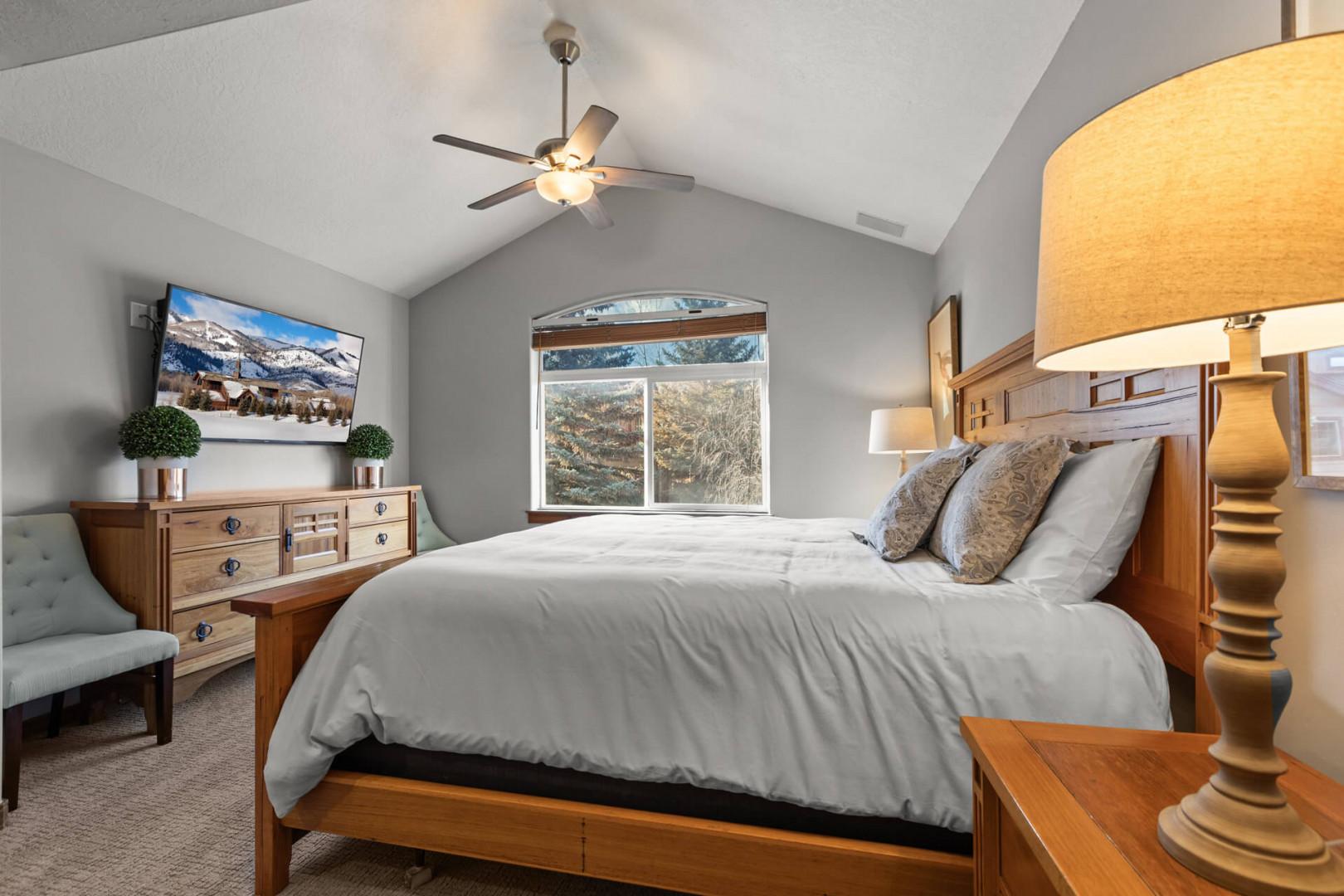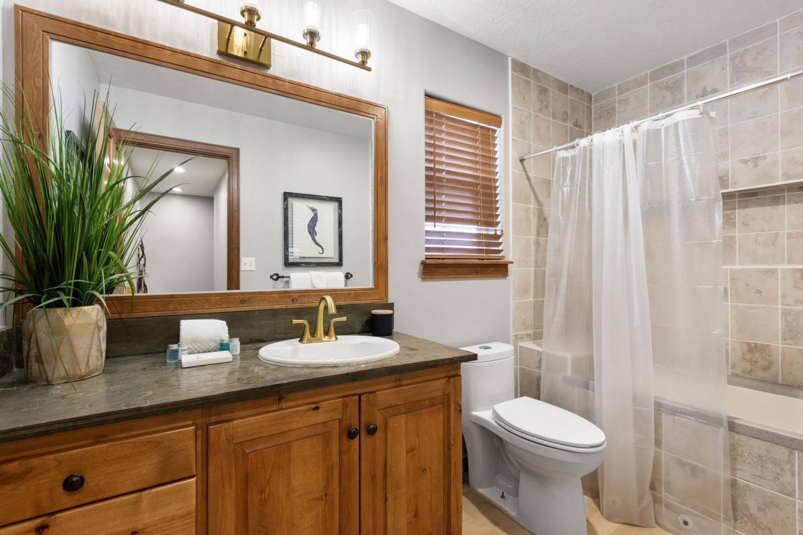 The peaceful PRIMARY BEDROOM SUITE is located on the second level, and features a king-size bed underneath a vaulted ceiling, and an ENSUITE BATHROOM with a double vanity and a step-in shower. The SECOND BEDROOM has a comfy queen-size bed, the THIRD BEDROOM includes two twin-size beds, and the FOURTH BEDROOM has a queen-size bed and a twin-size bed. Bear Hollow Village 5458 also houses two FULL BATHROOMS with tub/shower combos, a POWDER ROOM, and a LAUNDRY ROOM.