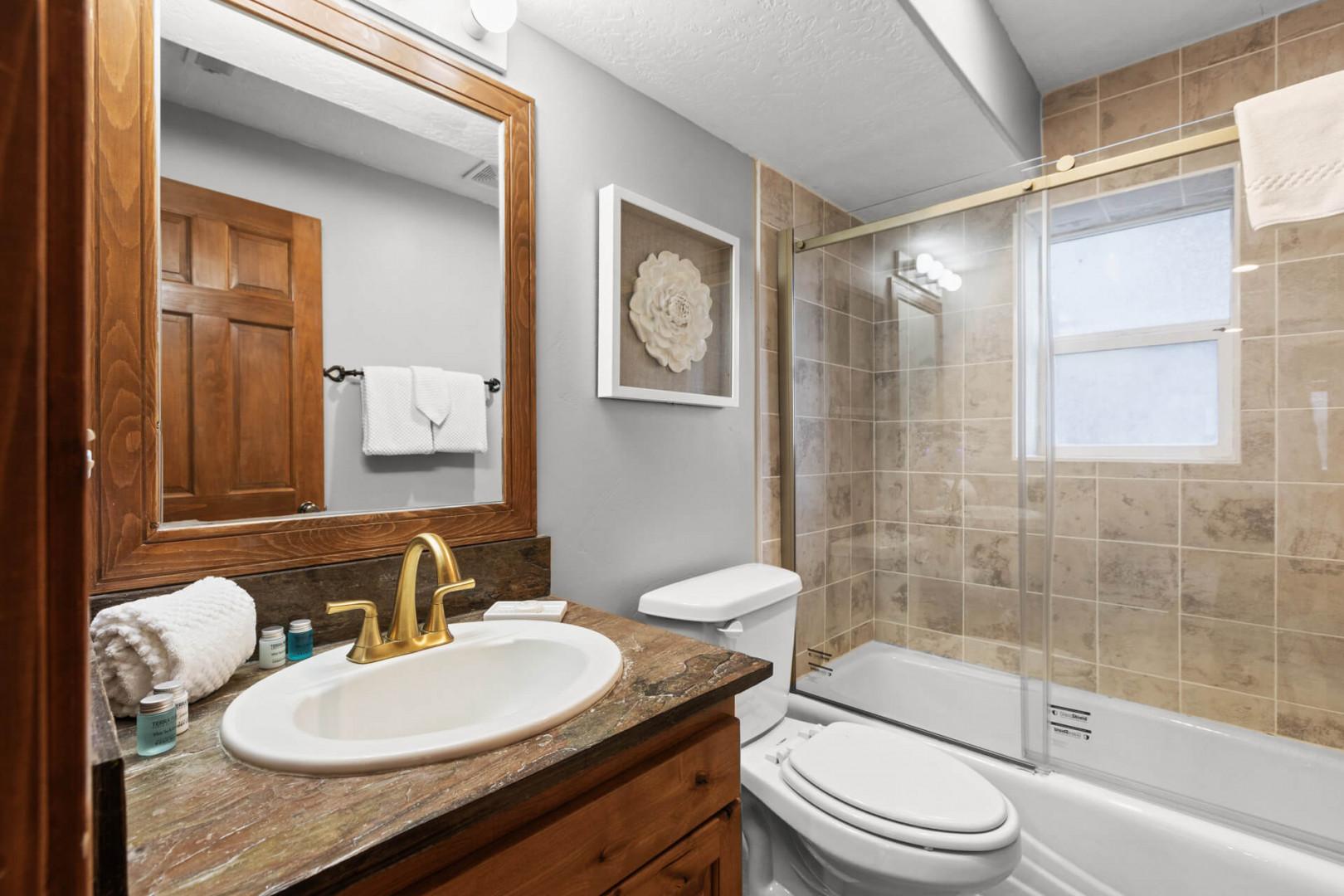 Tucked within a lovely local community that’s surrounded by mature trees and natural mountain beauty, Bear Hollow Village 5458 is a four-bedroom Park City home with over 2200 square feet of inviting living space. This elegant townhome features a relaxing, private HOT TUB that’s ideal for an end-of-day soak. Plus, your group will have an all-access pass to the excellent Bear Hollow neighborhood community extras— like a seasonal swimming pool, fire pits, and a fitness center.