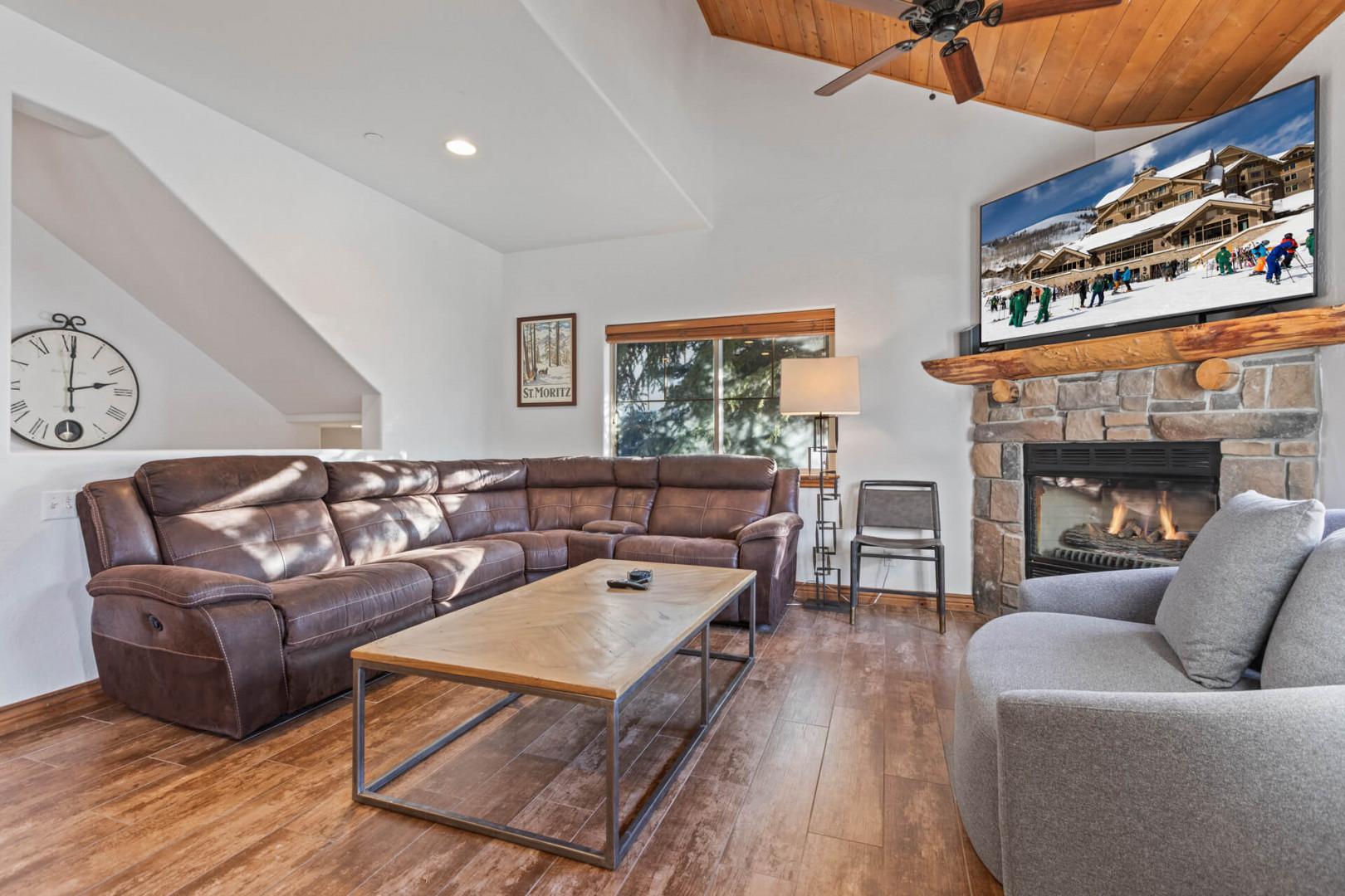 Vacation Rentals in Park City at Bear Hollow Village 5482 A: Living room with cozy fireplace