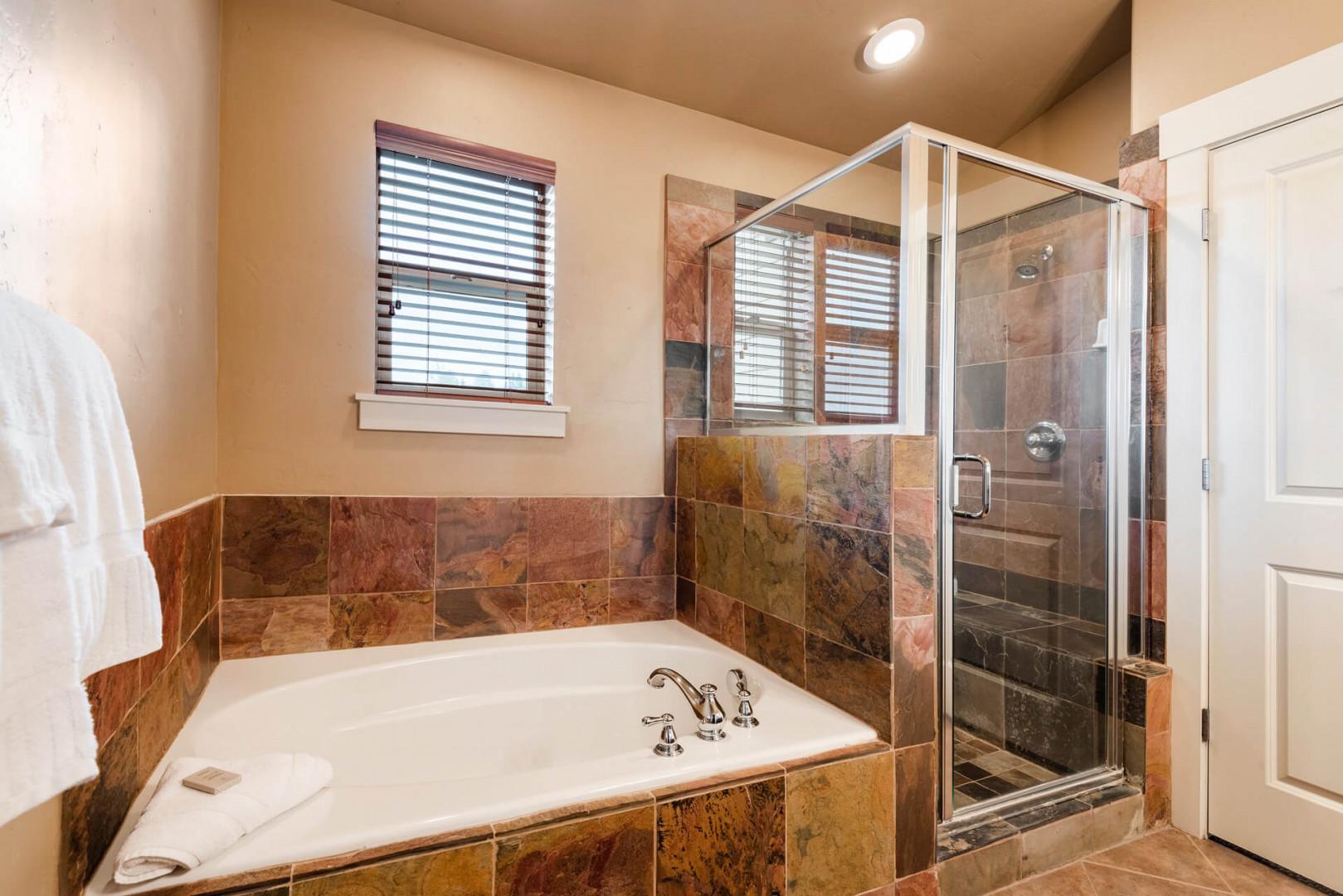 Bear Hollow 5557: Serene retreat with a luxurious bath tub and spacious shower area.