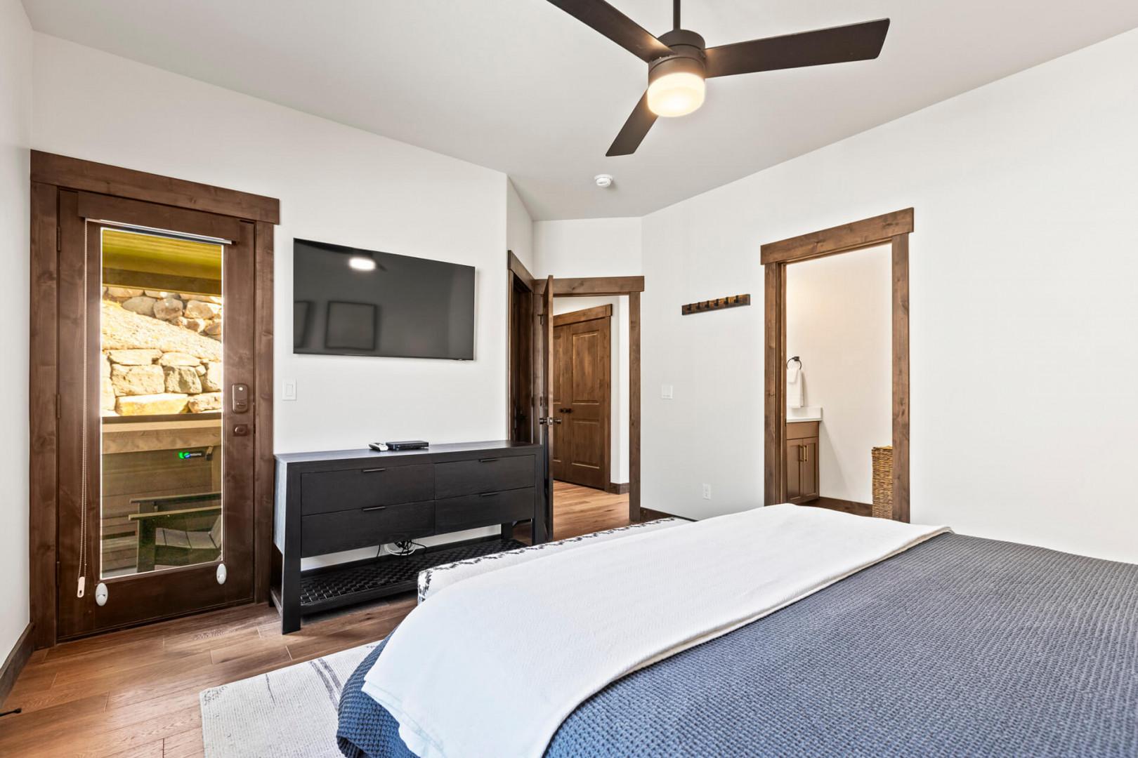 Bedroom 3: King bed, TV, bathroom next to bedroom in hallway