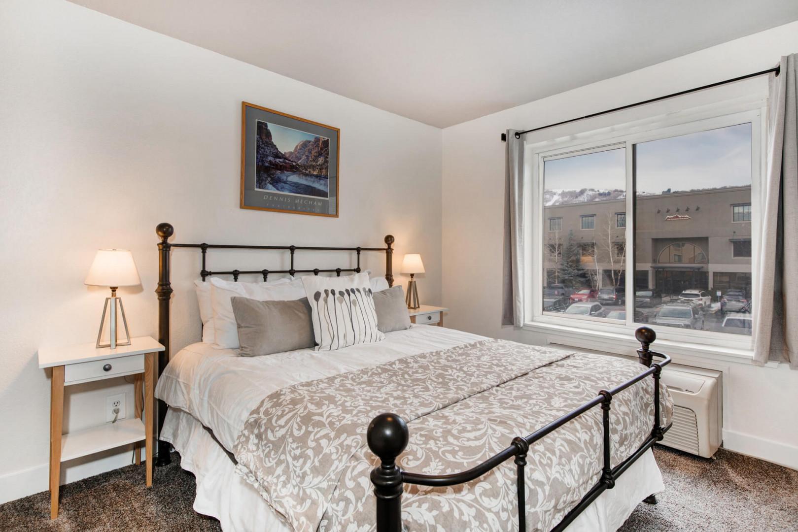 Vacation Rentals in Park City at Carriage House 305: Primary bedroom - Queen-sized bed