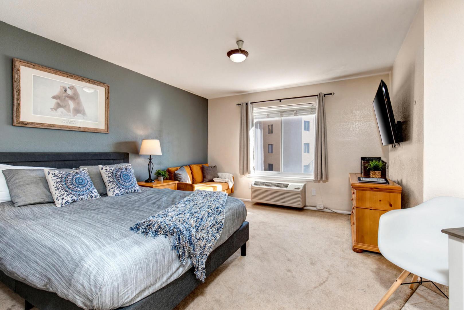 Welcome to your charming studio oasis, where every detail is designed for your comfort and convenience. The inviting Queen Bed promises restful nights, while the self-inflatable Queen Airbed is ready for extra guests, complete with fresh, new bedding. Relax in the comfortable seating area, perfect for unwinding with a good book or catching up on your favorite shows on the Smart TV with YouTubeTV. Stay connected with complimentary Wifi throughout your stay.