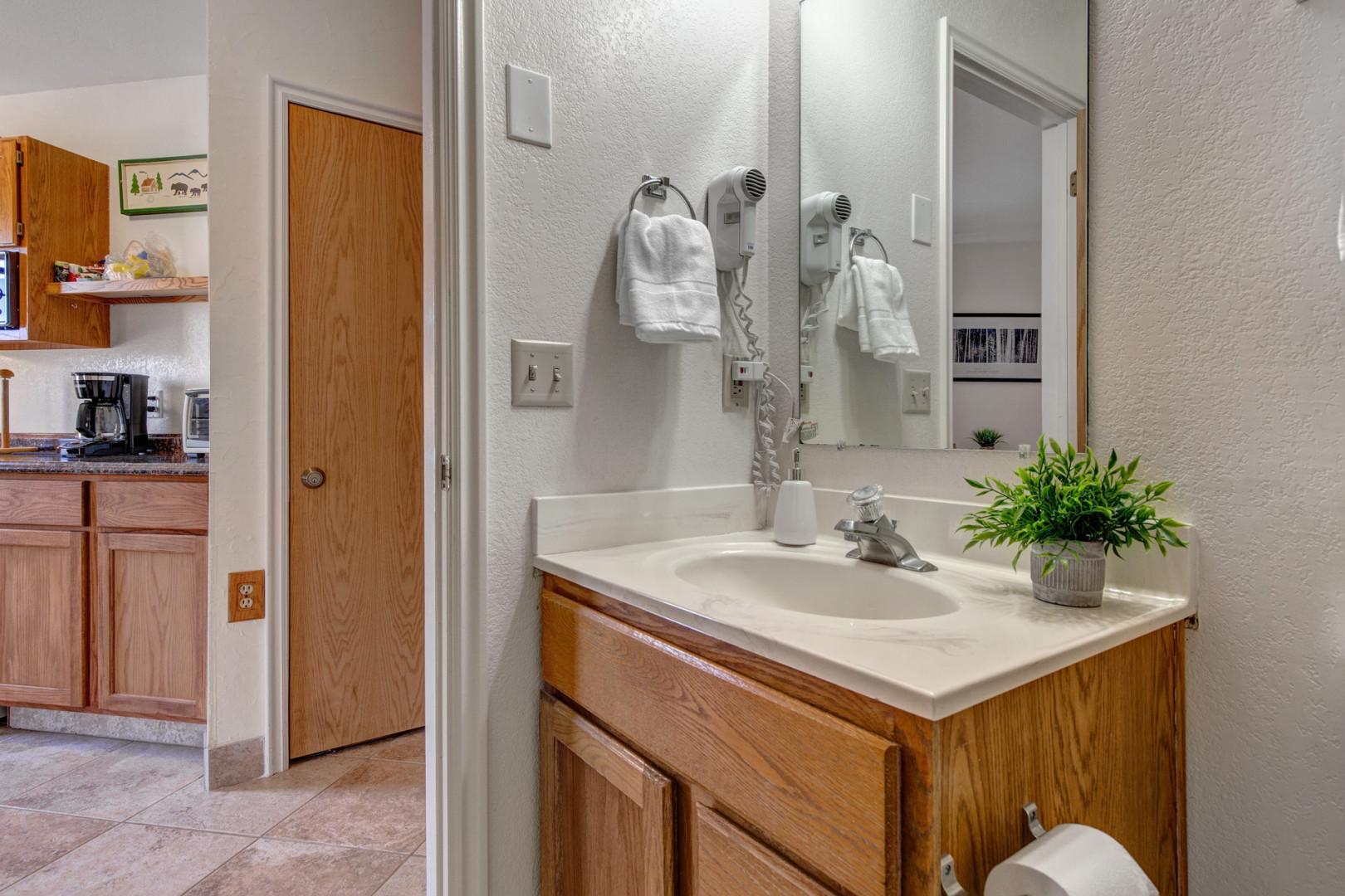 Indulge in the full bathroom, featuring a tub/shower combo for your bathing pleasure. With brand-new towels provided, you can enjoy a touch of luxury and a refreshing start to each day.