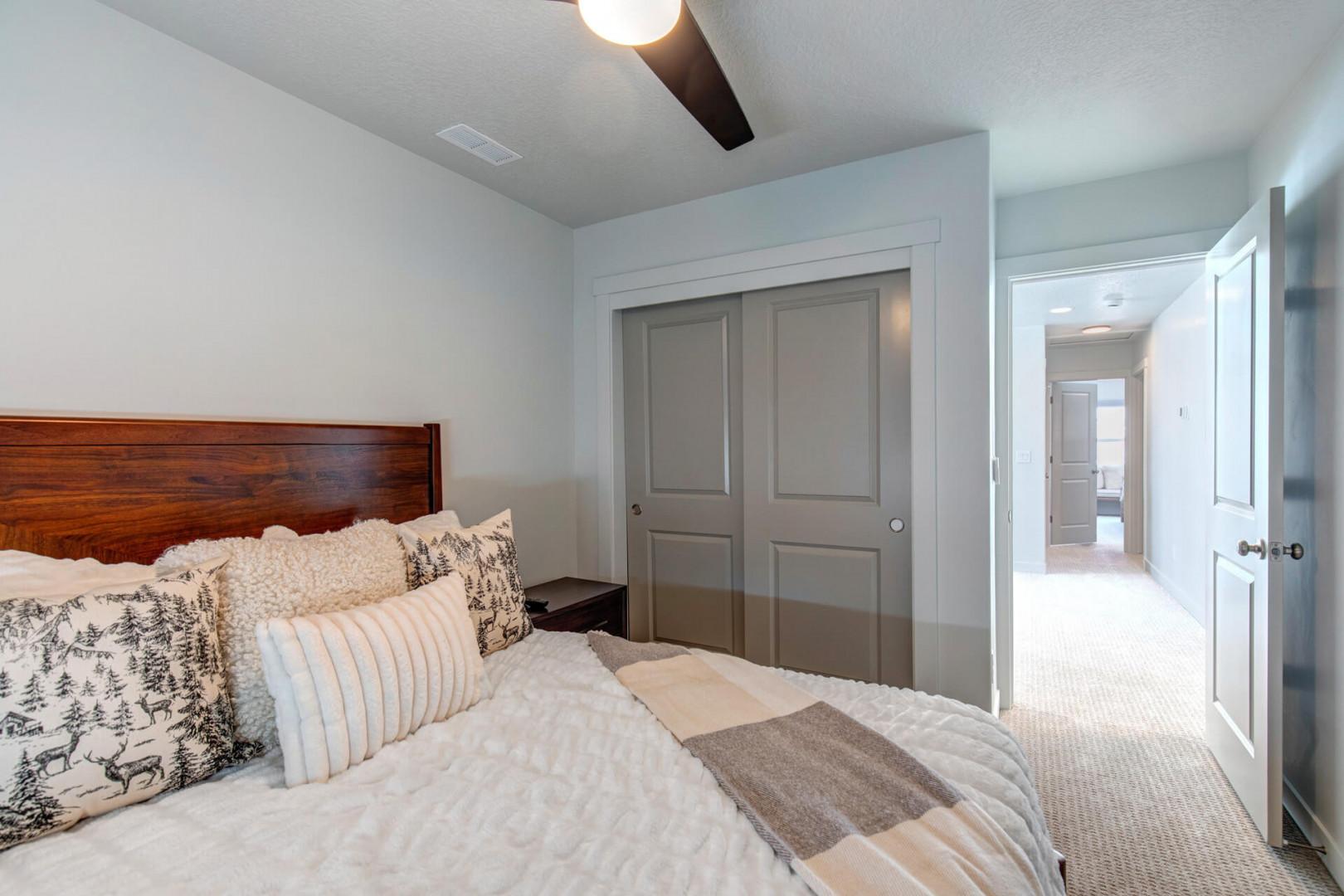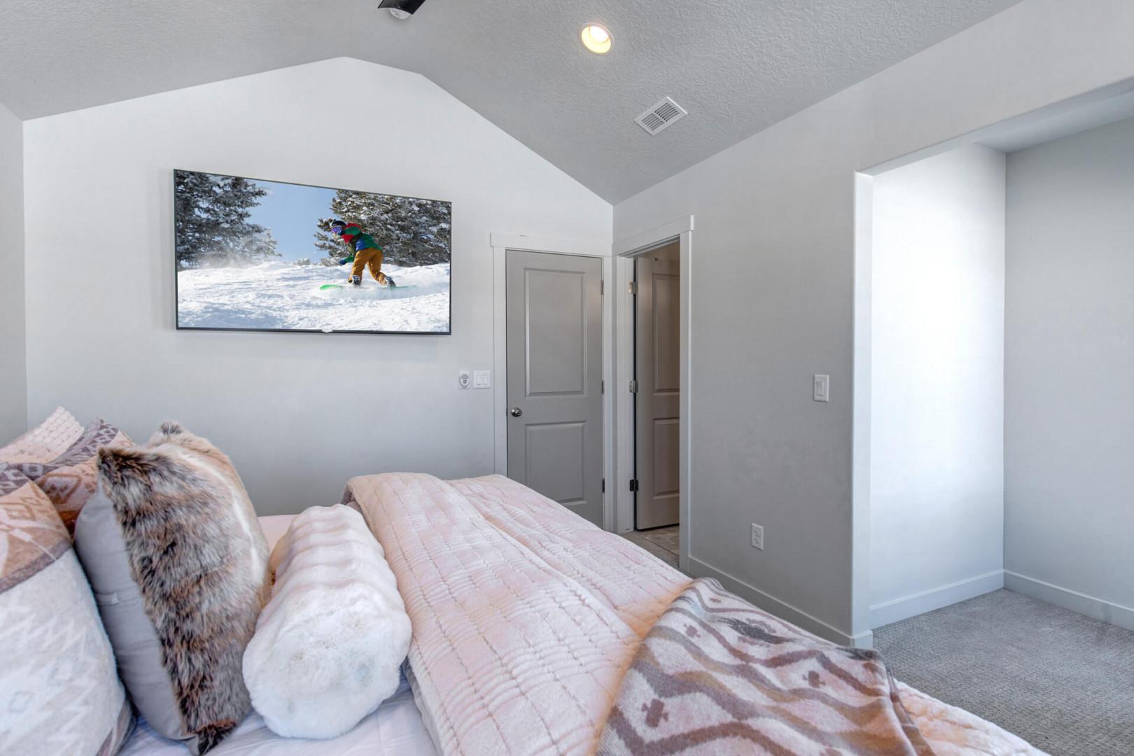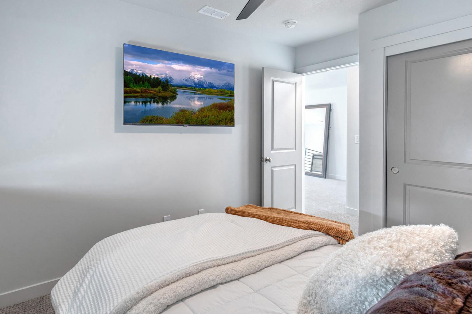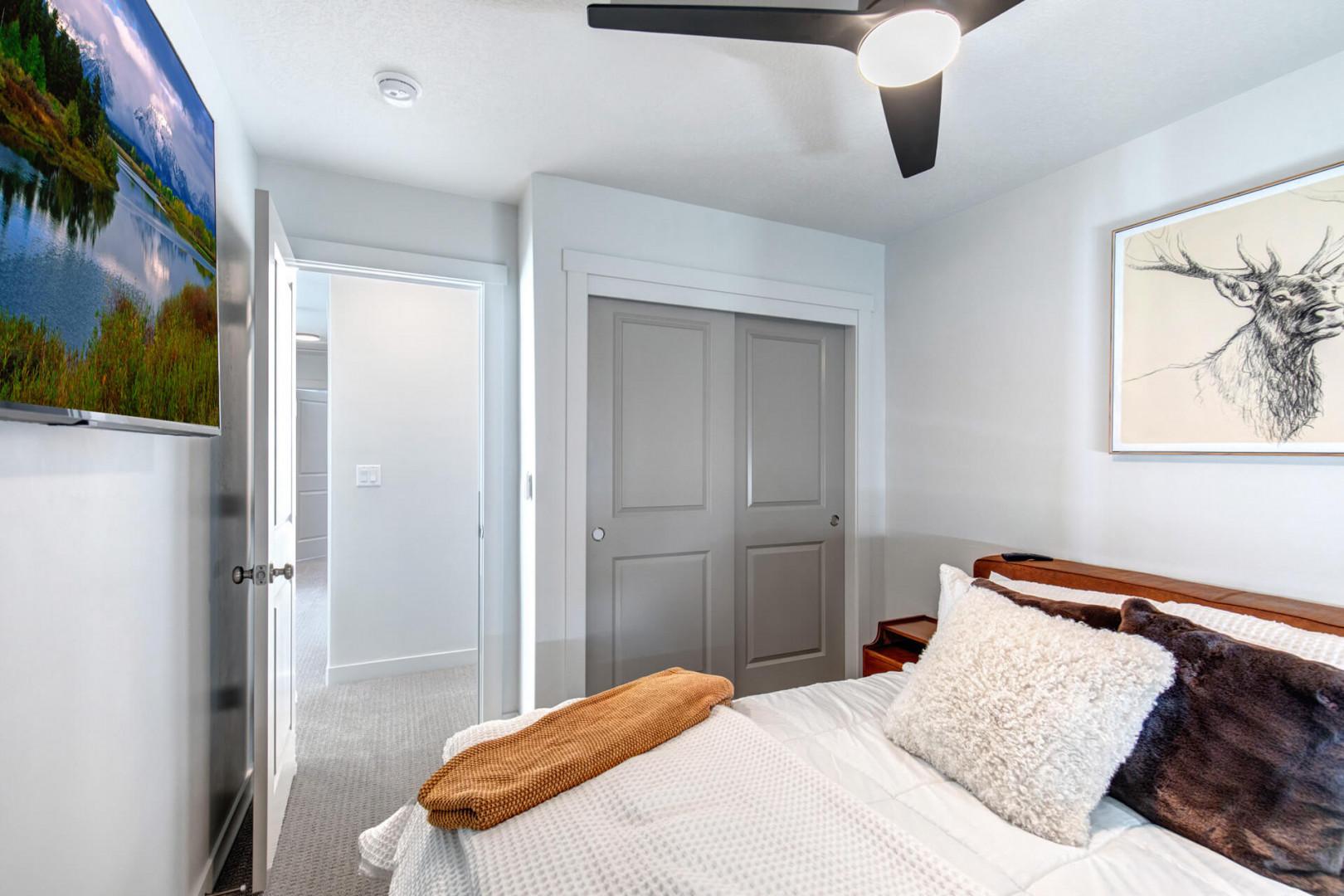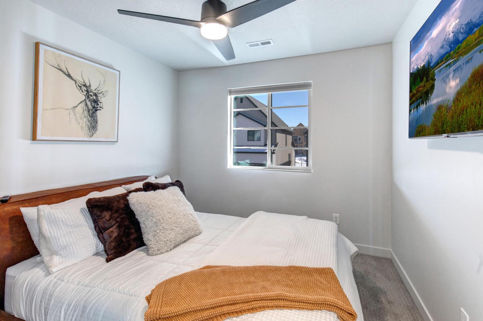 Third bedroom: Queen bed, ceiling fan, TV