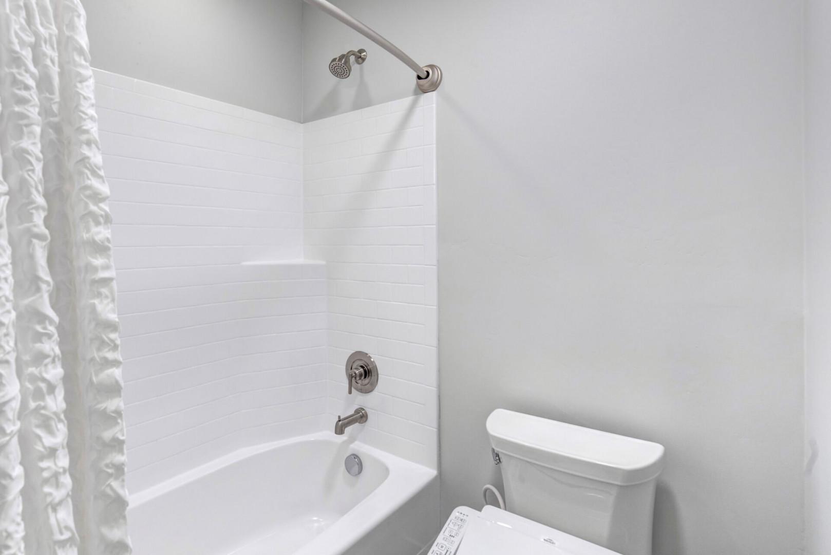 Second-floor shared bathroom: Tub-shower combo, bidet.