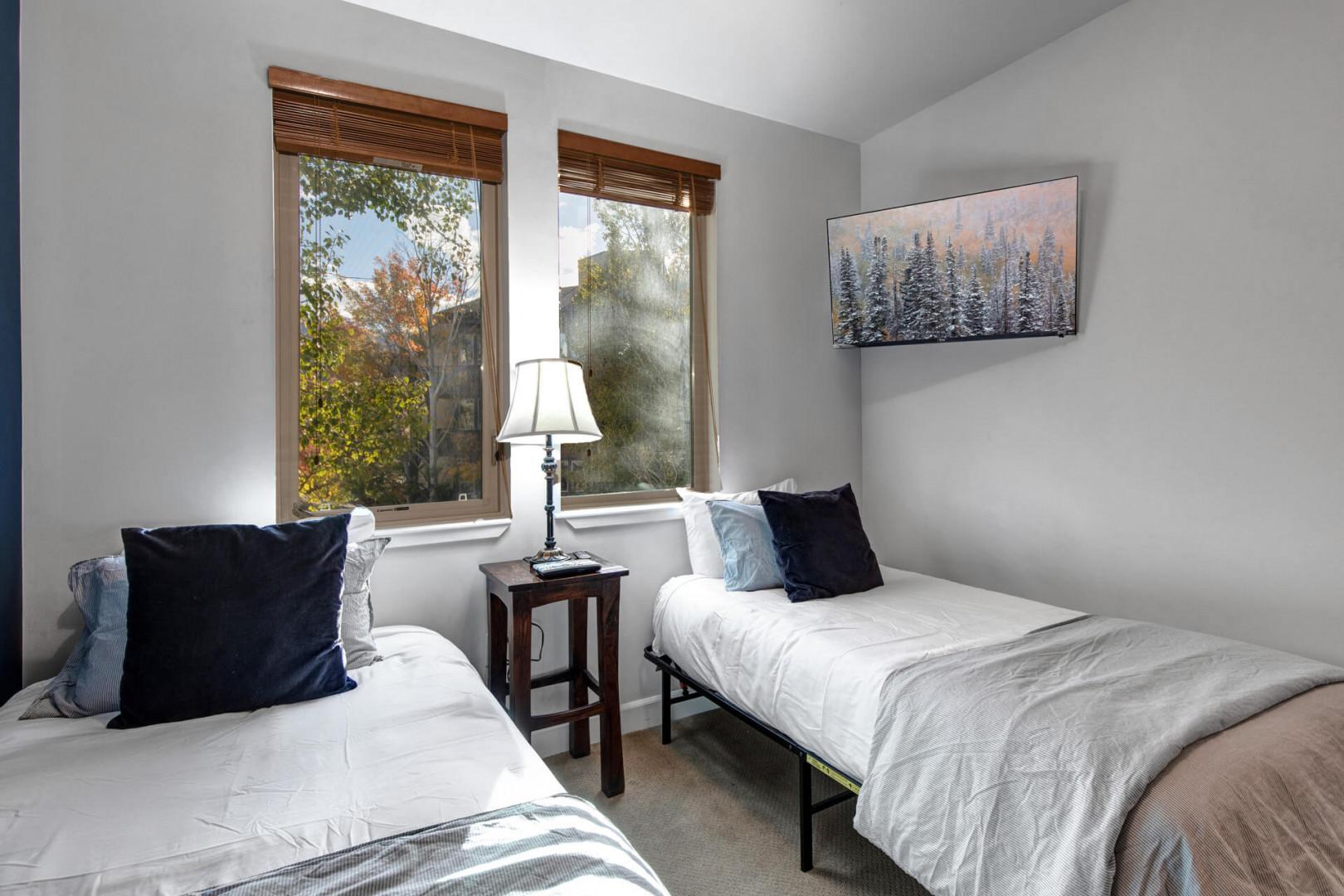 Crestview Commons A207: Bedroom 2 offers two cozy twin beds and a smart TV.