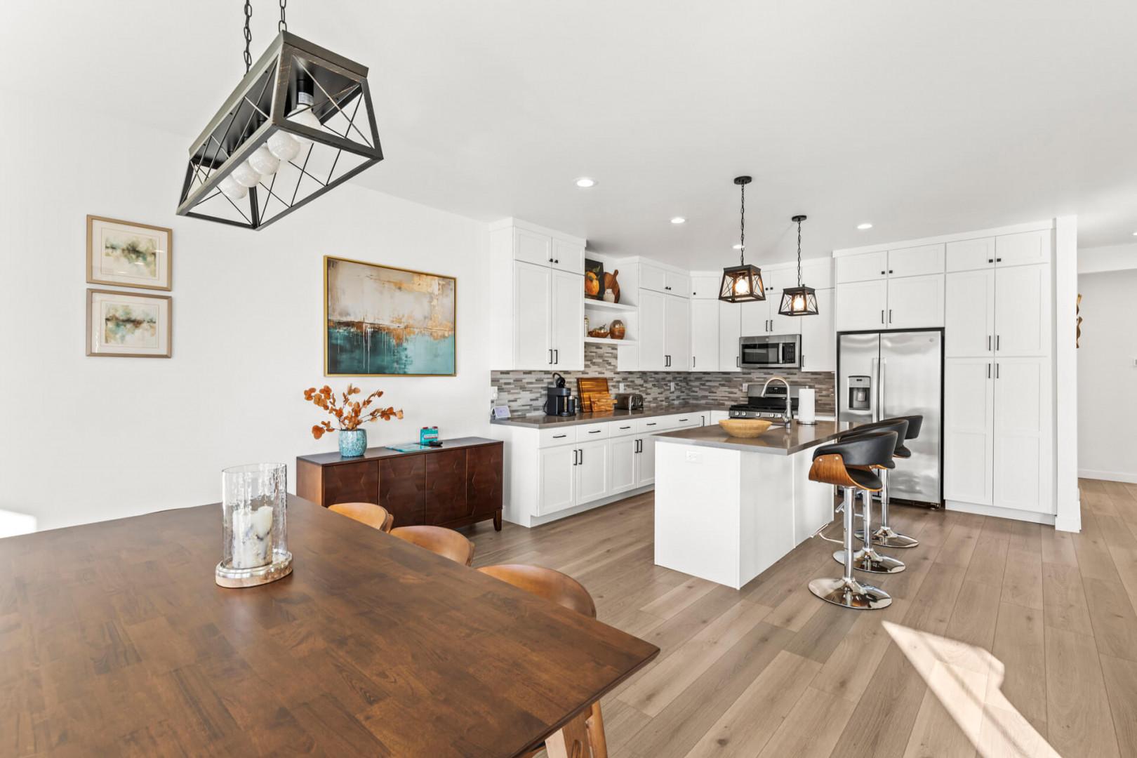 Jordanelle Ridge 499: Sideboard, dining table with seating for 8, and bar with seating for 3.