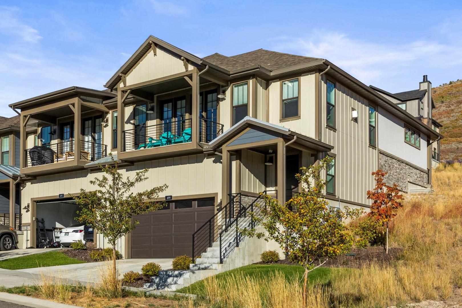 Jordanelle Ridge 499: Front exterior view of driveway and garage