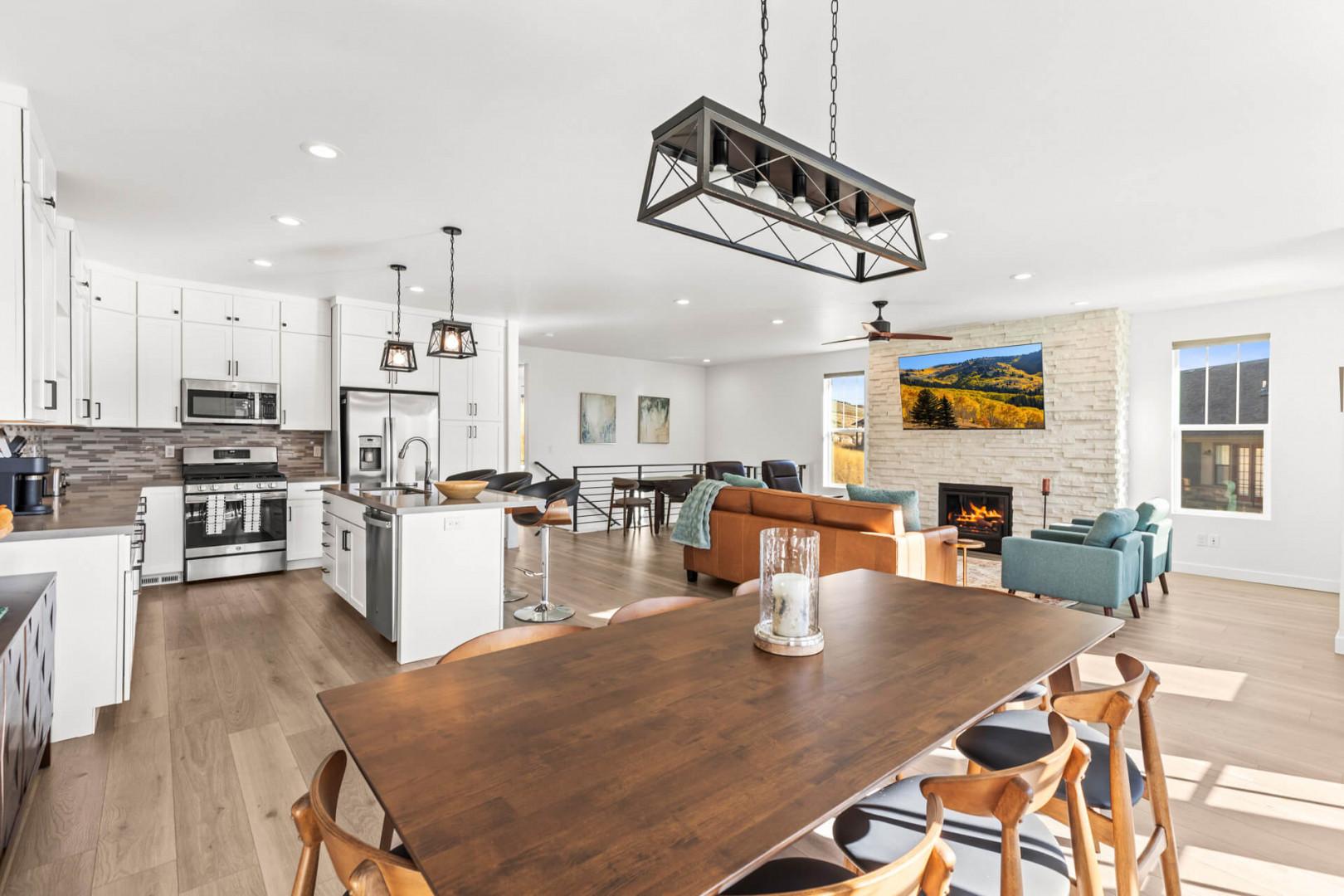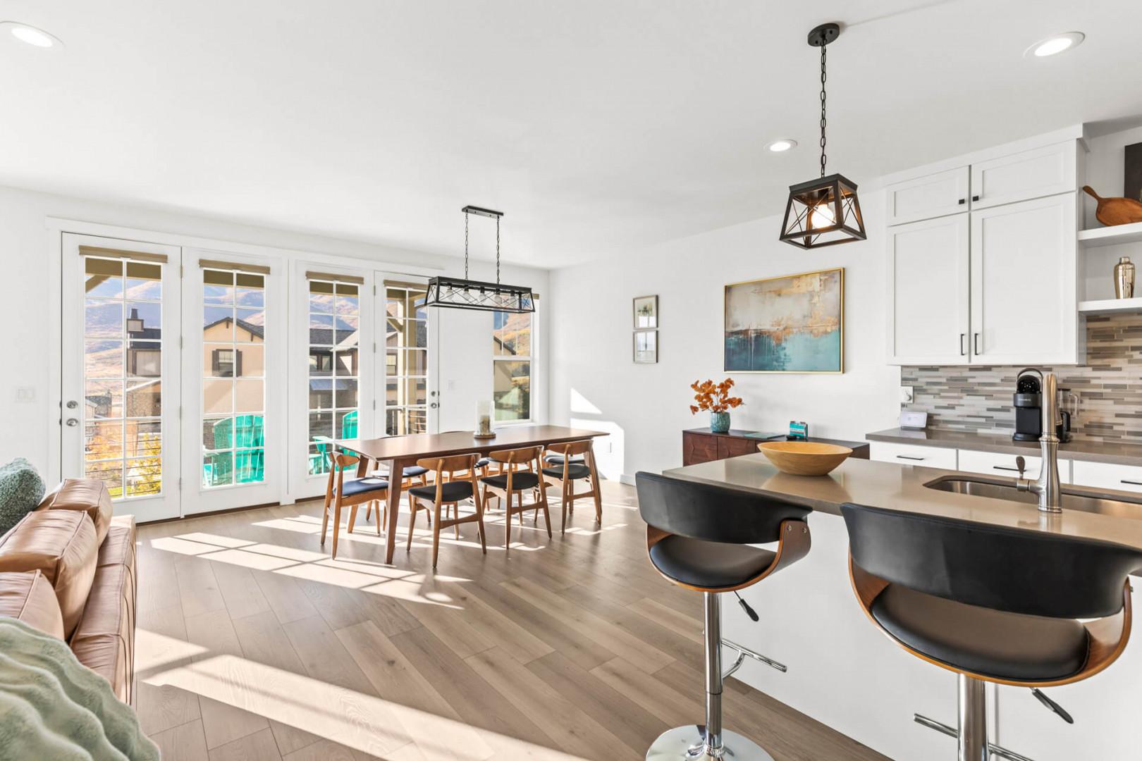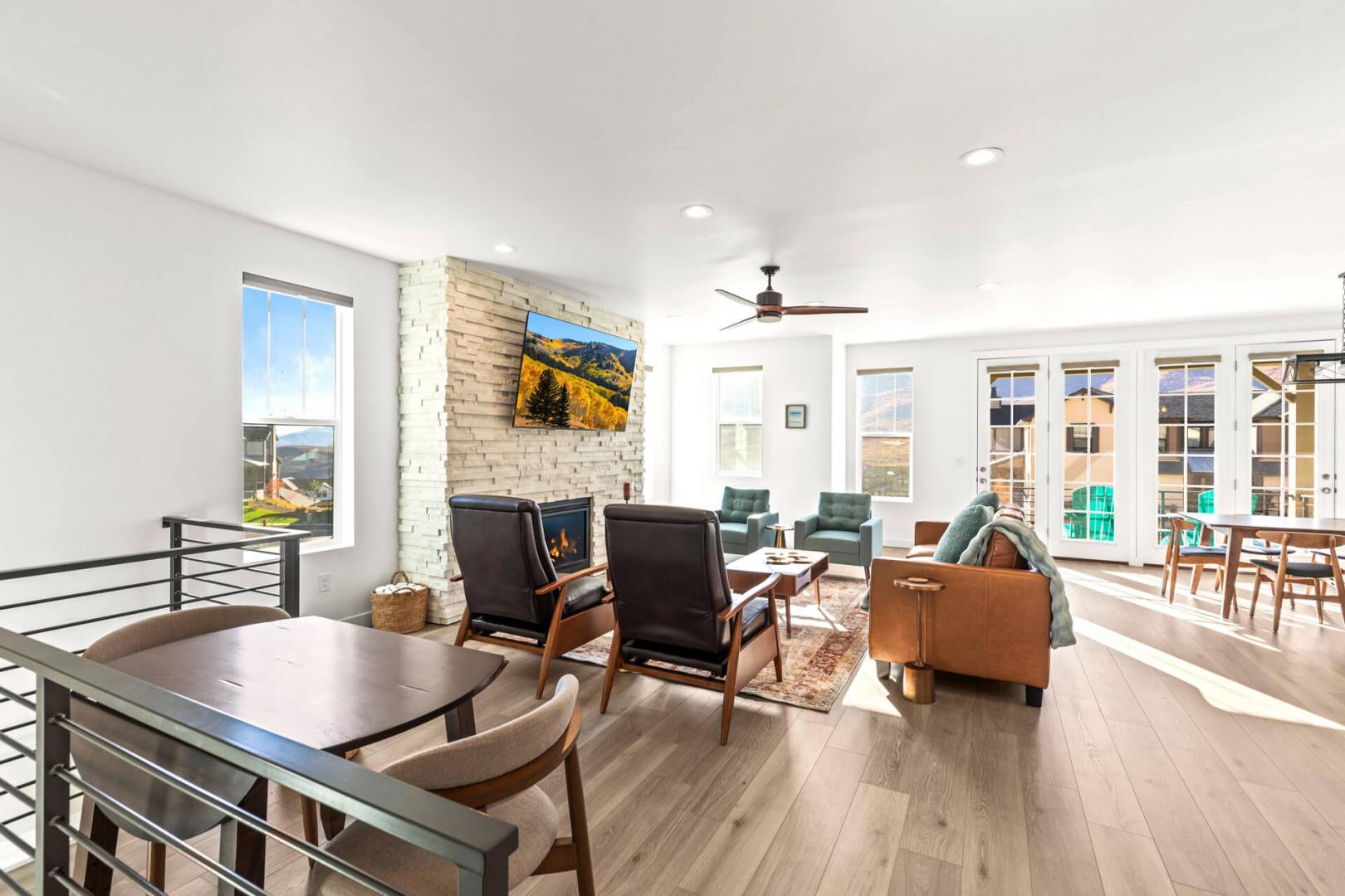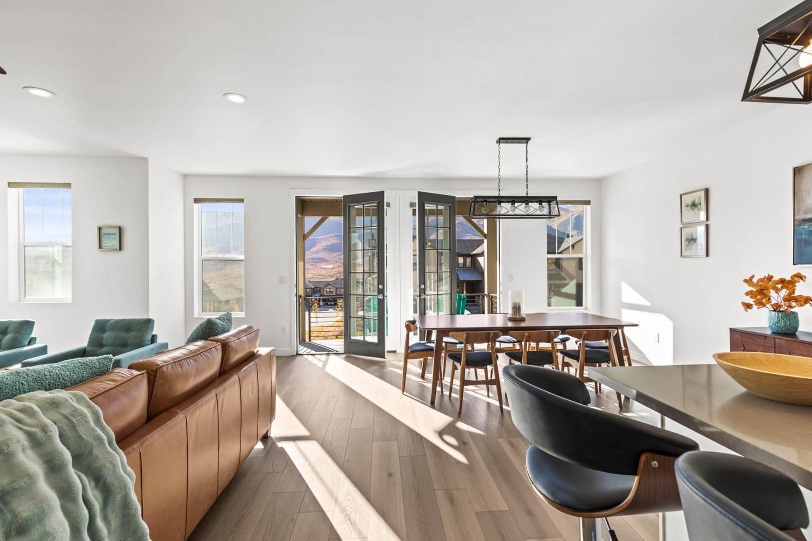 Jordanelle Ridge 499: Open and bright concept for gathering with plenty of seating for dining, movies, games and more.
