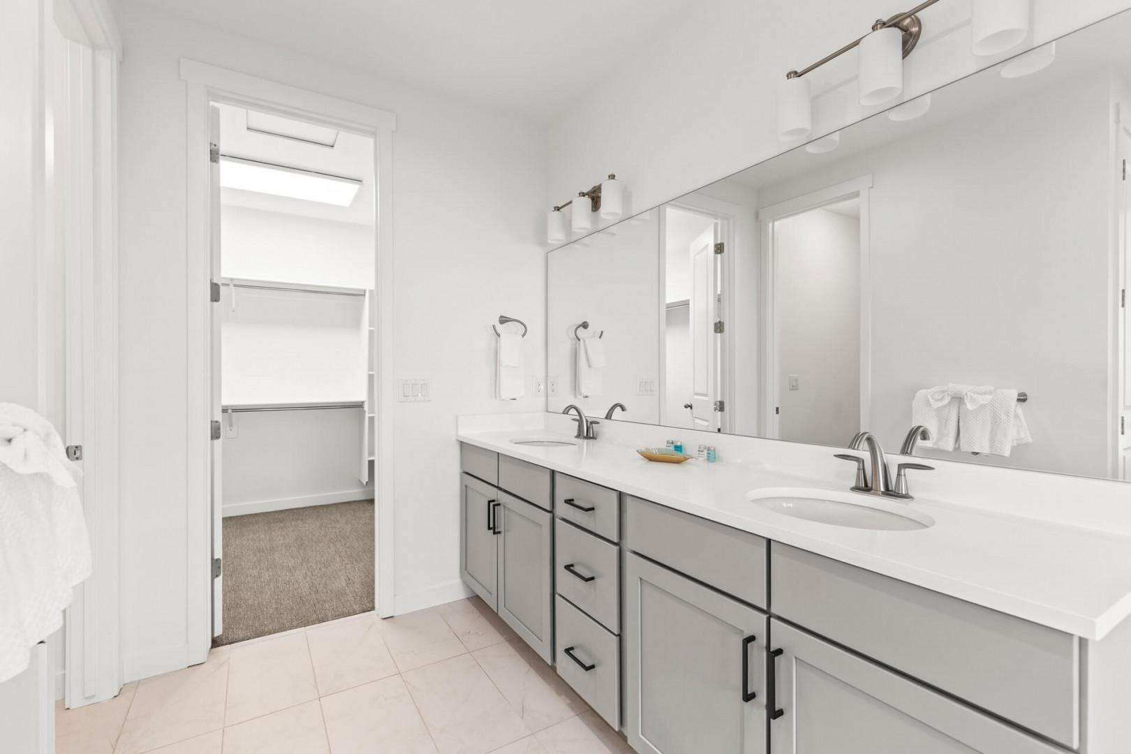 Jordanelle Ridge 499: Dual sink vanity, lighted mirror, and walk-in closet with a sit-down makeup vanity.