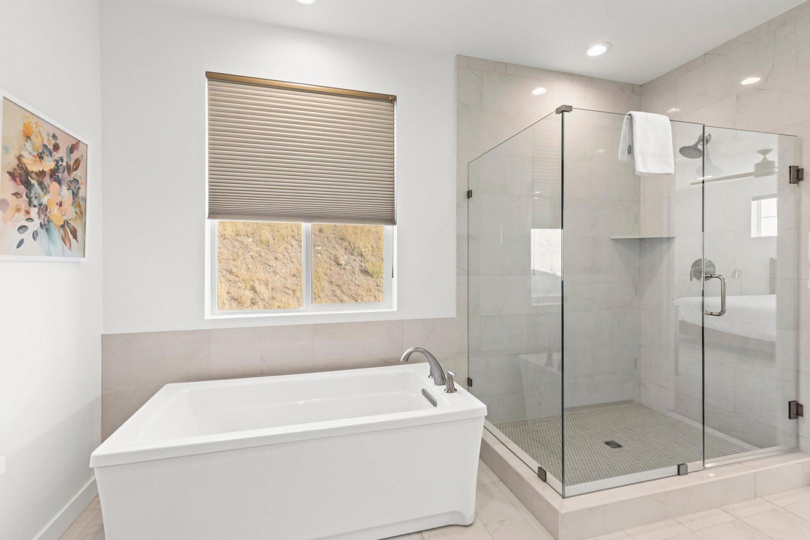 Jordanelle Ridge 499: Separate soaking tub and glass/tile walk-in shower.