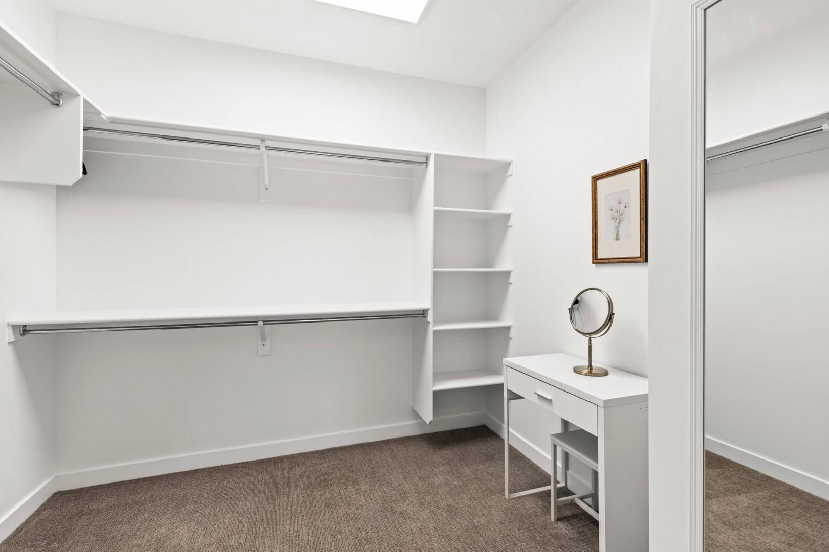 Jordanelle Ridge 499: Walk-in closet with a sit-down makeup vanity.