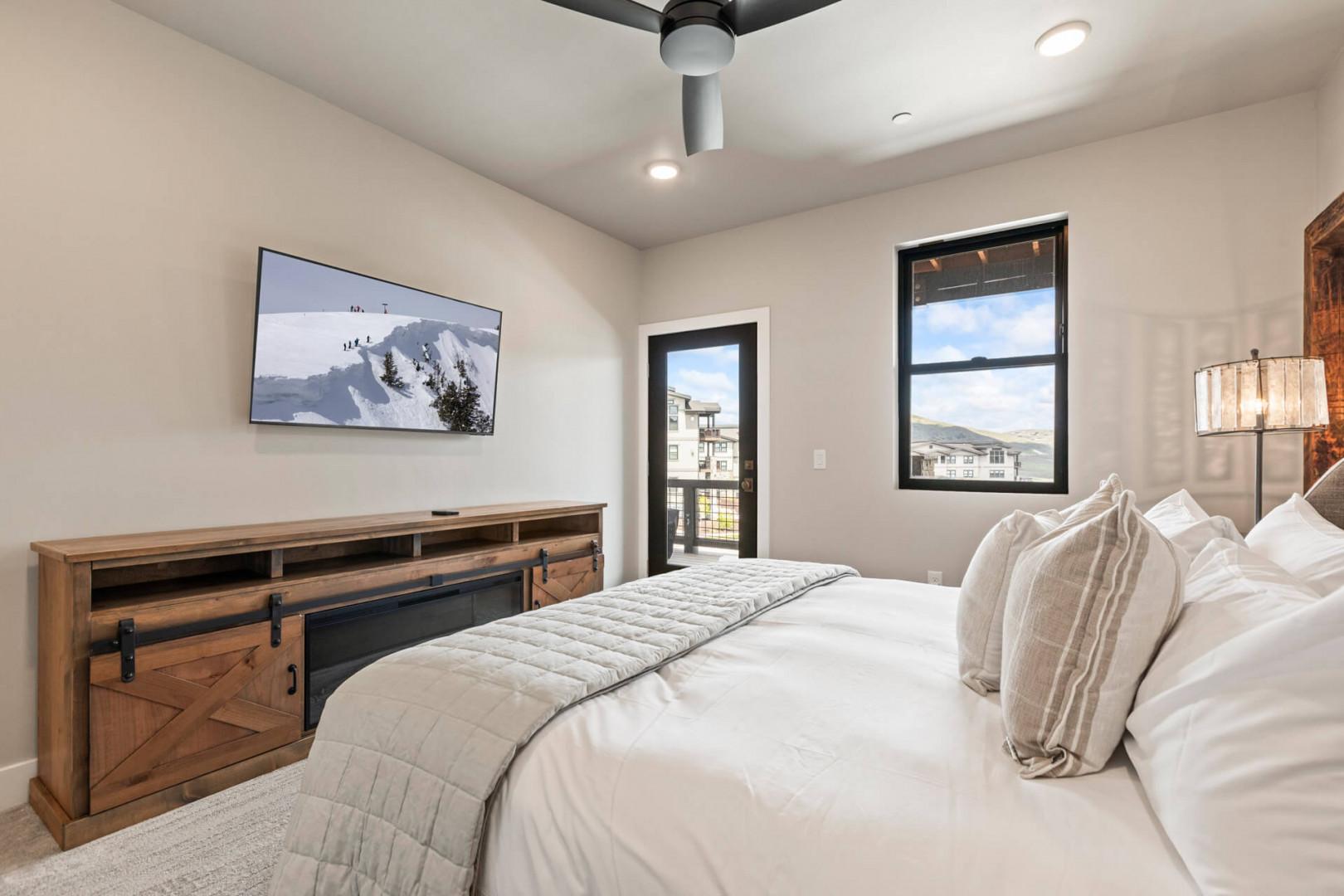 Vacation Rentals in Park City at Mayflower Lakeside 1169-201: Primary King Bedroom-Access to Patio