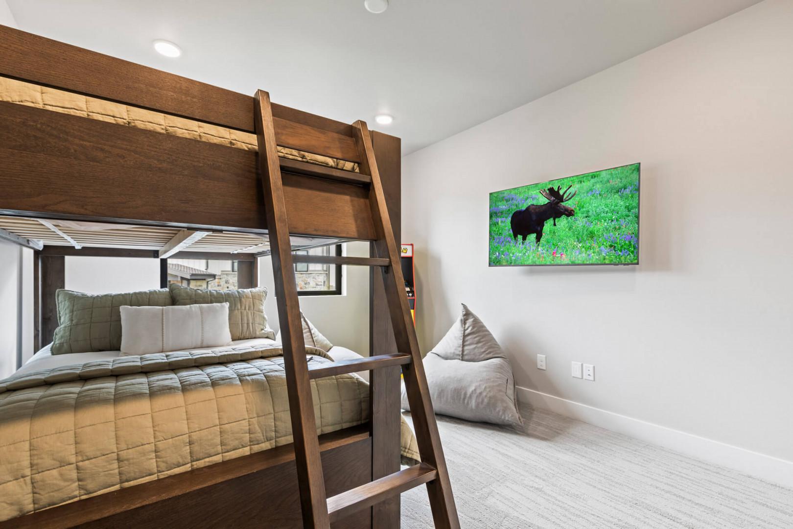 Bedroom 3: Full over Full bunk bed with 55" Samsung Smart TV and Pac-man arcade game
