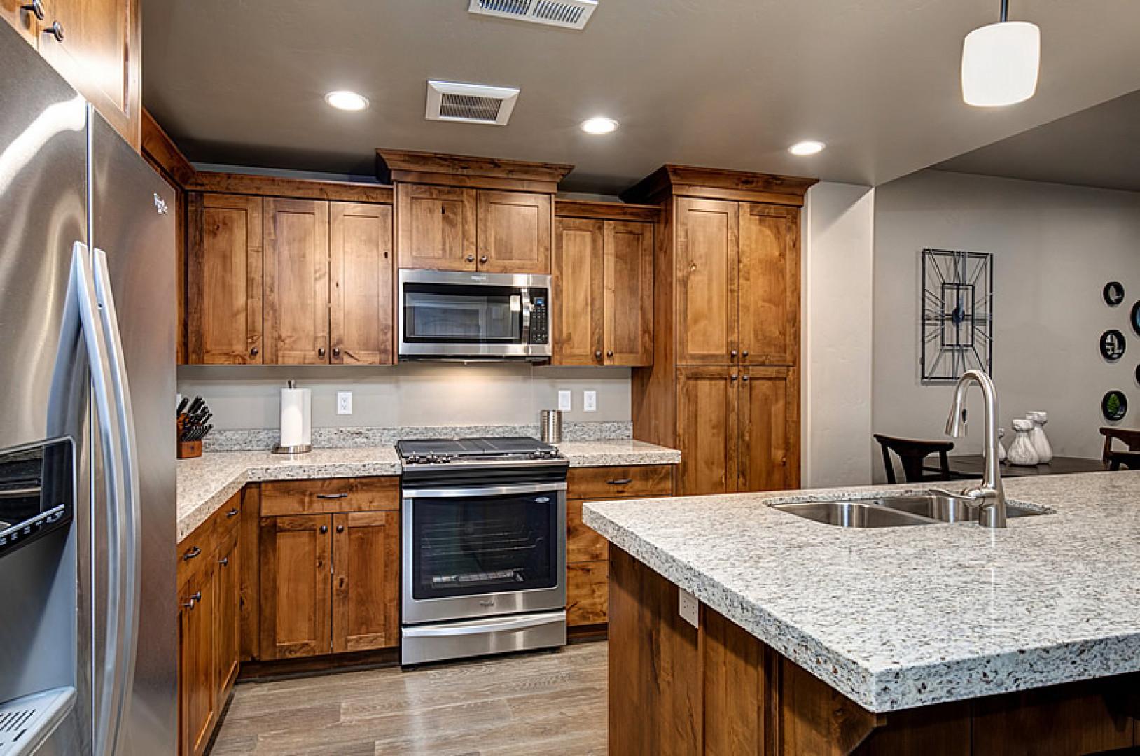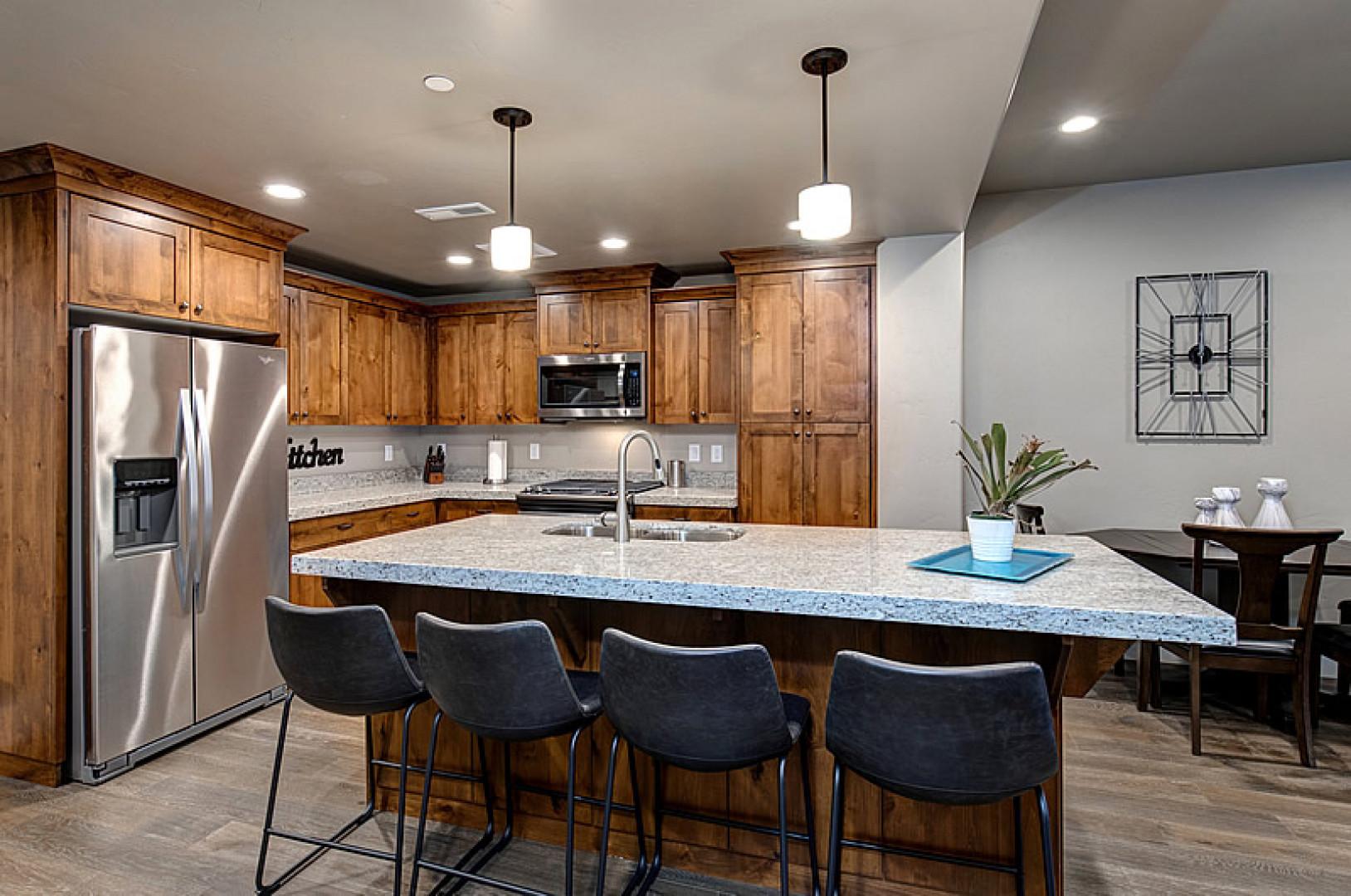 This NEW, beautifully decorated Tri-level Townhome is perfectly designed for small groups and families. Exceptional care and consideration has been taken in the décor and lighting throughout the home. On the main level, a gorgeous living room with a 55” HD Smart TV awaits you. There’s plenty of seating, a ceiling fan, a gas fireplace, and access to a balcony with seating and a Gas BBQ Grill.