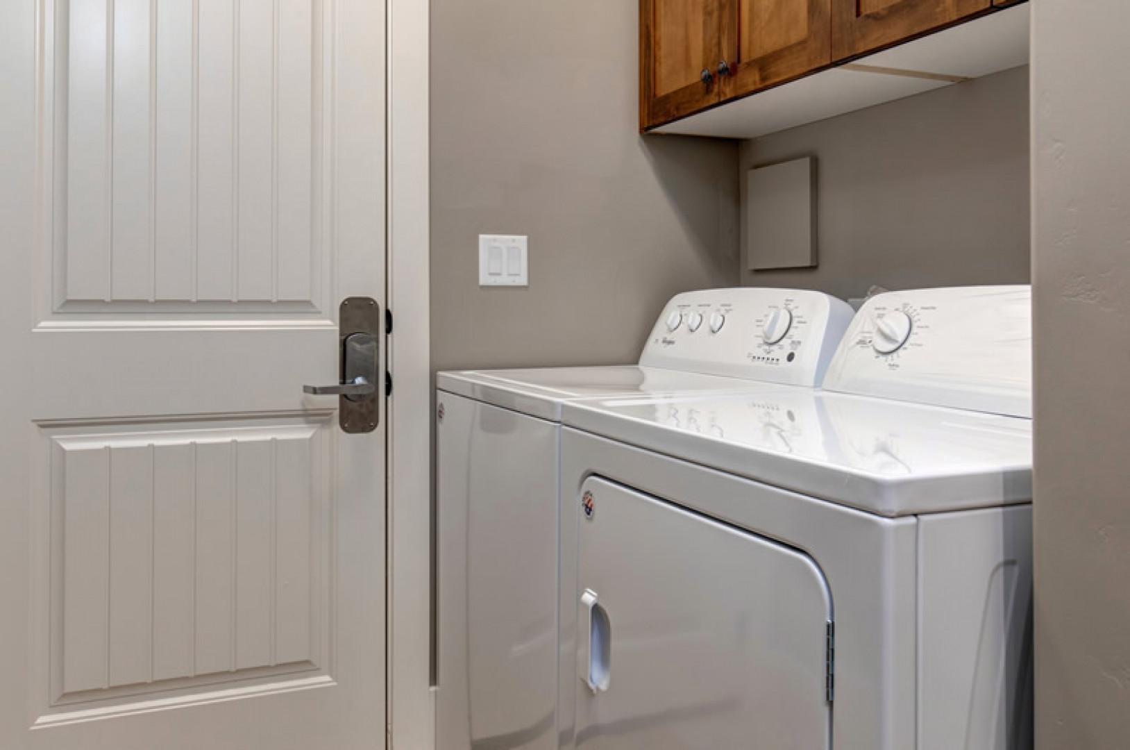 Downstairs, on the first floor, you will find another Master Suite with Queen-sized bed and En Suite bathroom with a tub/shower combination. There’s a full-size HE Washer and Dryer located on the 1st floor. No need to worry about wet clothes!