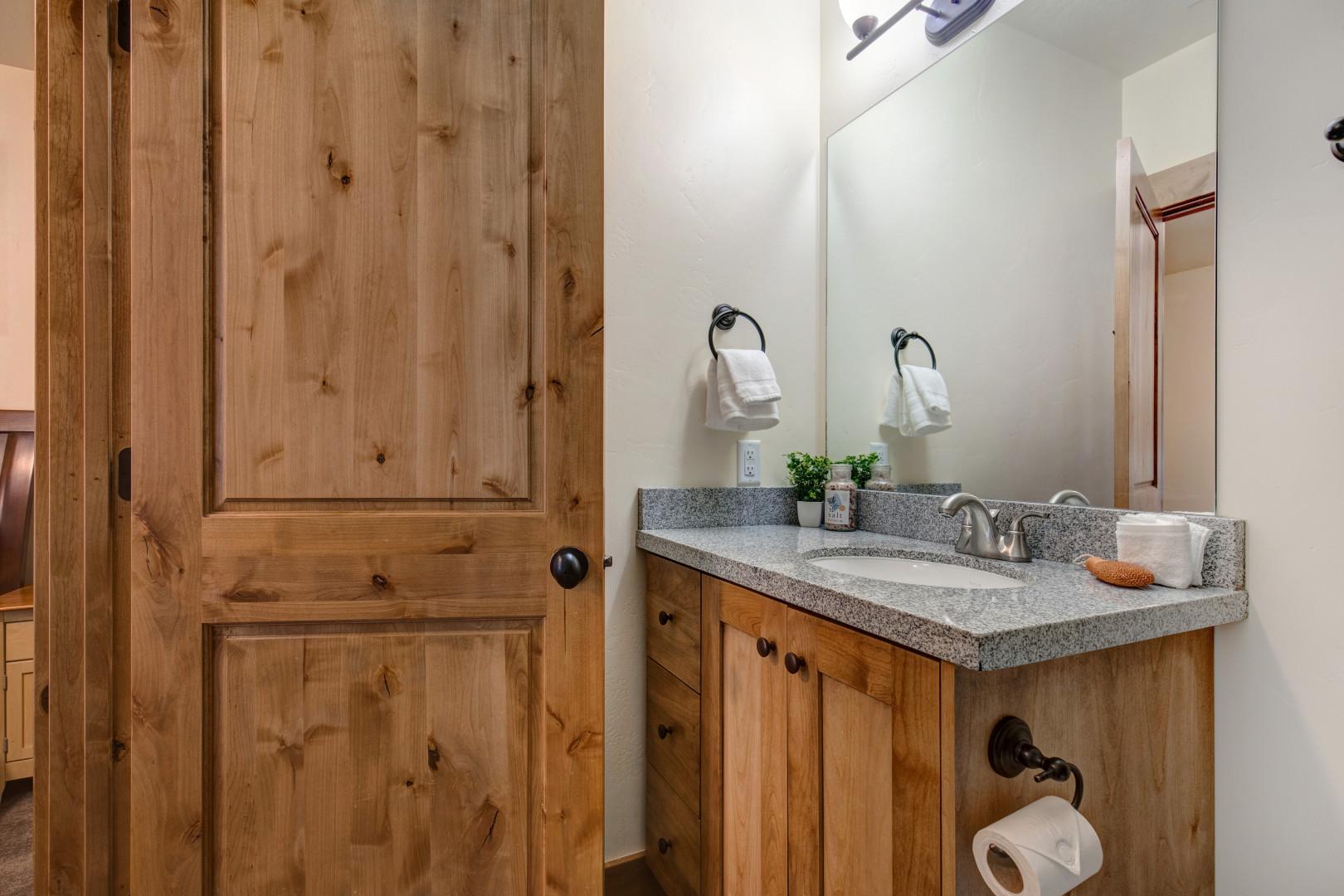 Back on the main level, a sliding glass door leads out to the sun-kissed back PATIO. In the warmer months, this is the perfect spot to enjoy a cocktail while the burgers cook on the grill. In the winter months, the relaxing private hot tub is ideal for soaking in after a long day on the ski slopes.