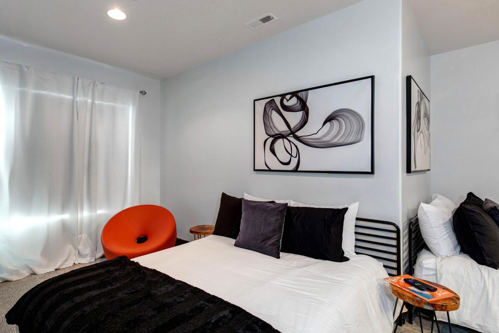 Each bedroom in this townhouse is a sanctuary designed for ultimate comfort and relaxation. On the first floor, Bedroom 1 is a retreat in itself, featuring three luxurious queen beds, a 50" Smart TV, and an ensuite bathroom complete with a tub/shower combo, hair dryer, and lighted mirror. This space is perfect for families or groups seeking both comfort and convenience. Ascending to the second floor, you’ll find the King primary suite, an oasis of luxury with a Visio 75" Smart TV and an opulent ensuite bathroom with dual shower heads and a center rain feature. This bathroom is a spa-like retreat, featuring a shower, dual sink vanity, and a bidet, offering a perfect start or end to your day.