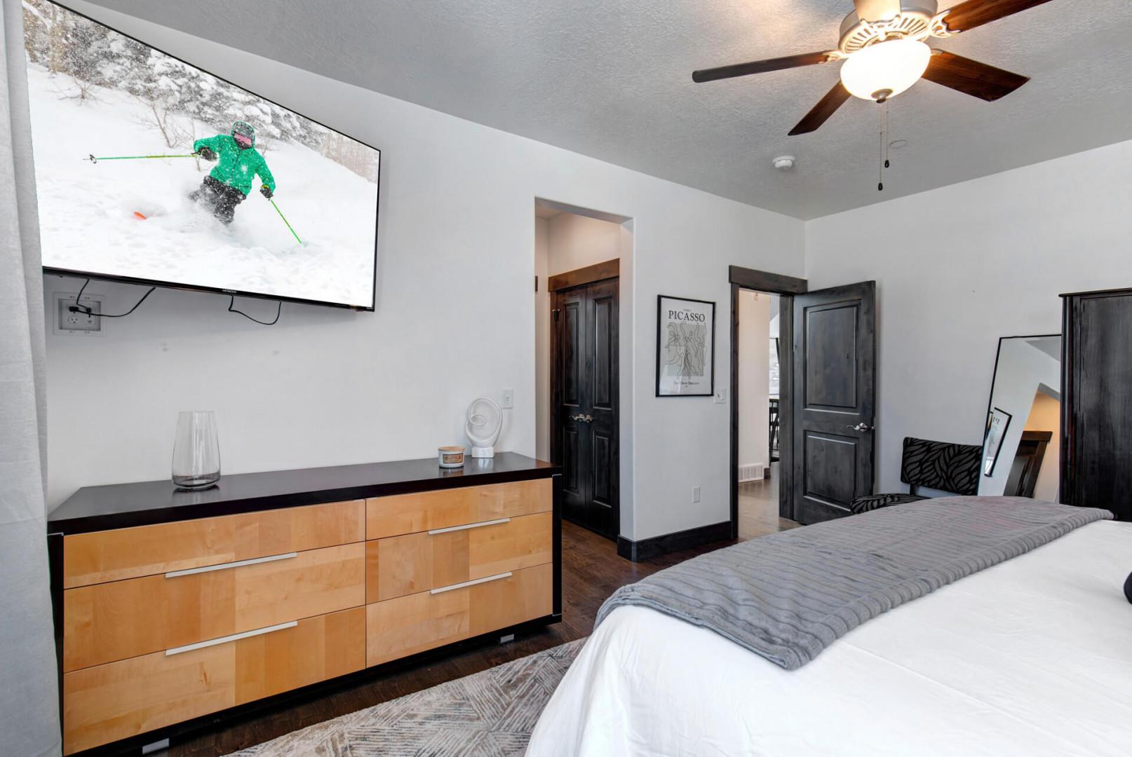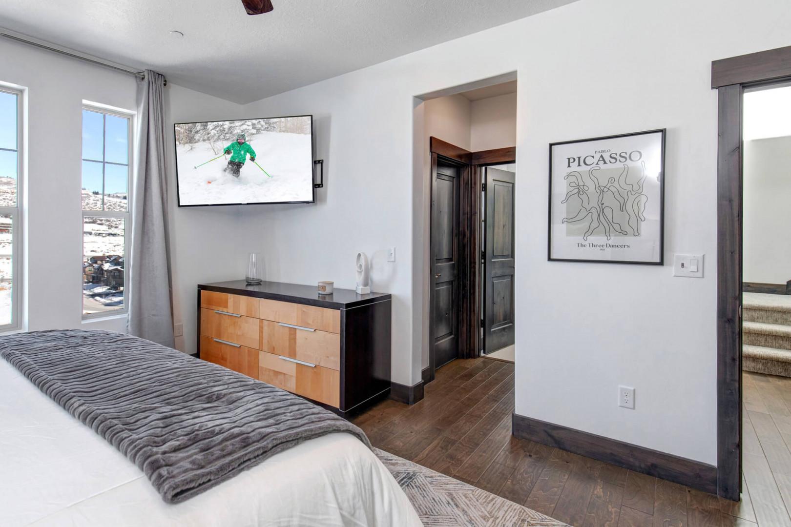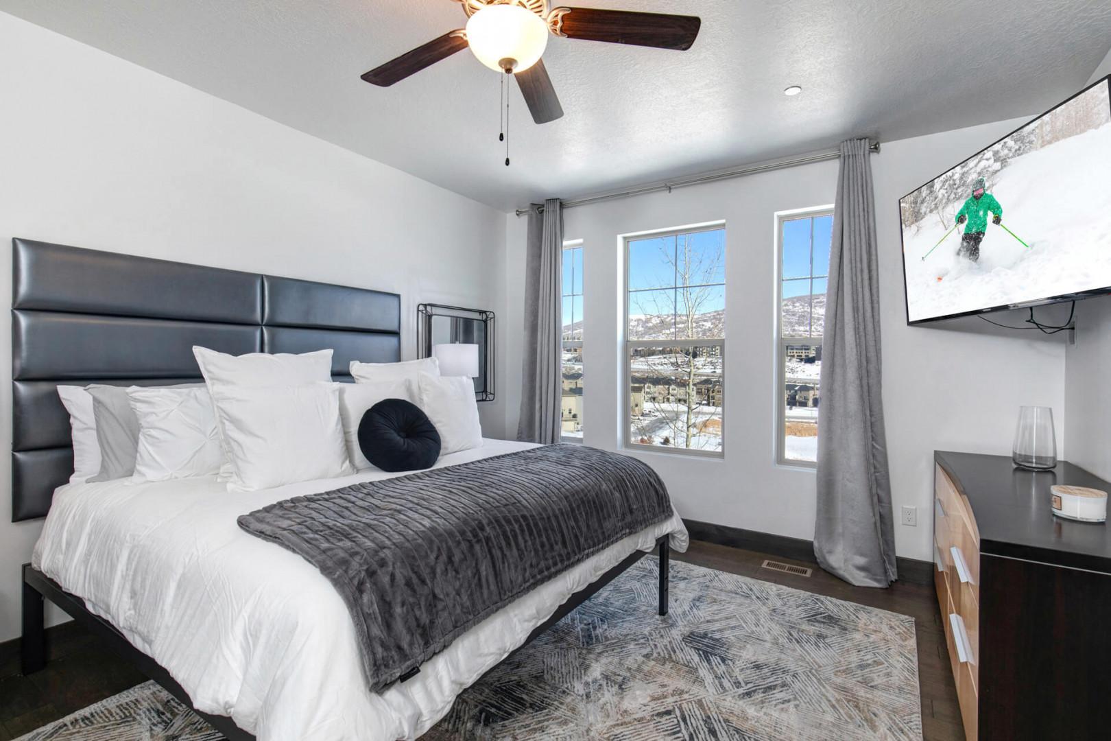 Retreat at Jordanelle 1157: Main level ensuite primary bedroom with King Bed and TV