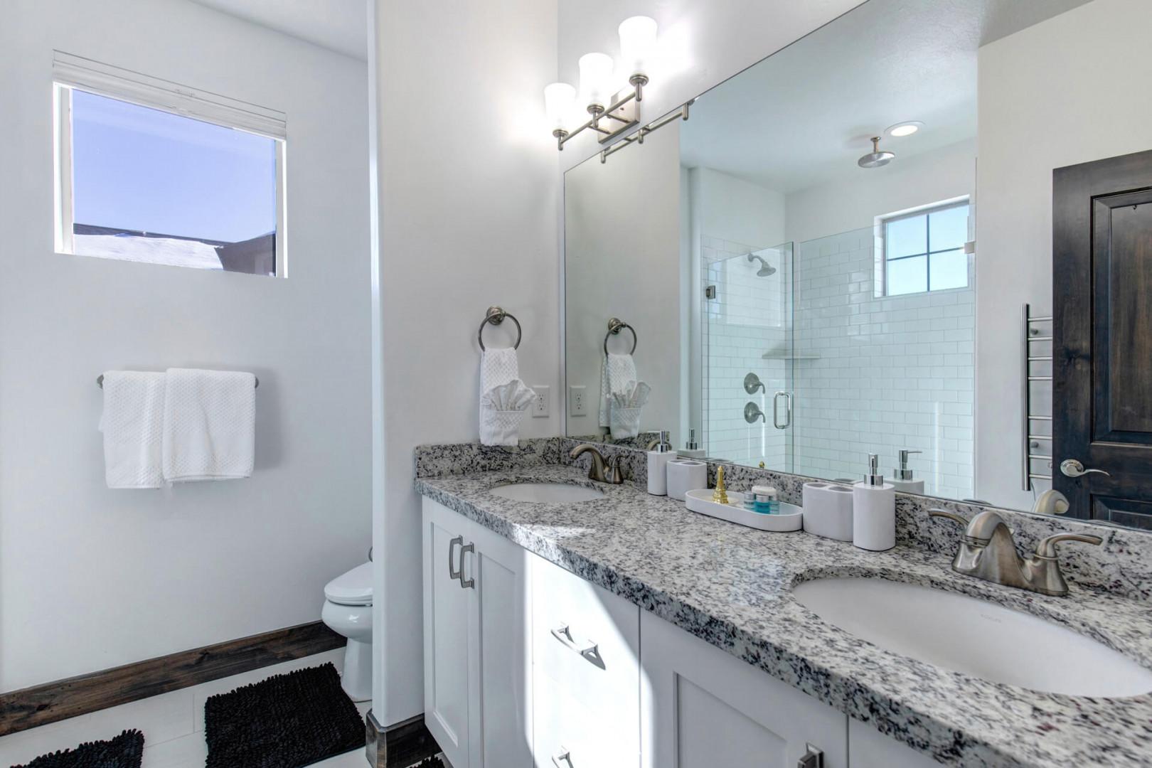 Retreat at Jordanelle 1157: Main level primary ensuite bathroom with dual sink vanity