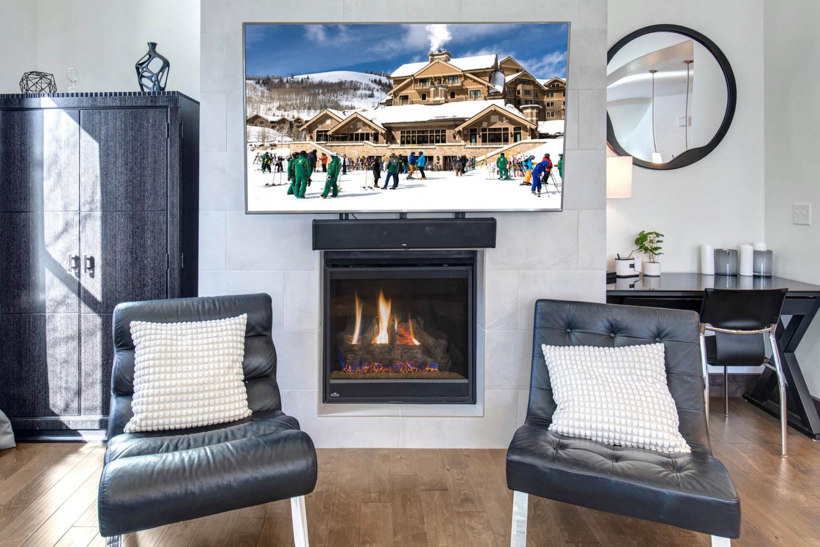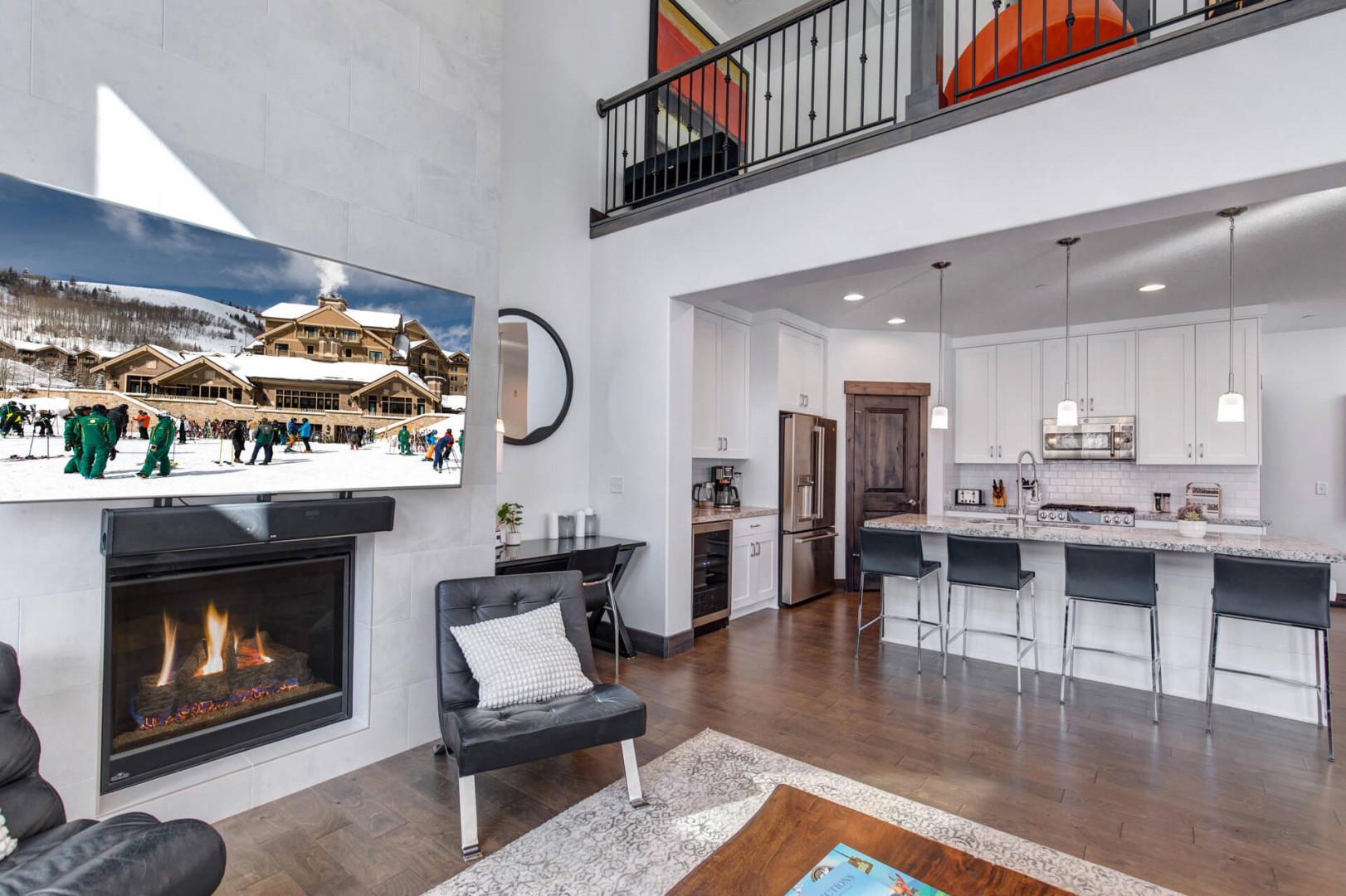 Retreat at Jordanelle 1157: Living/gathering area with tone of light, TV, fireplace and desk