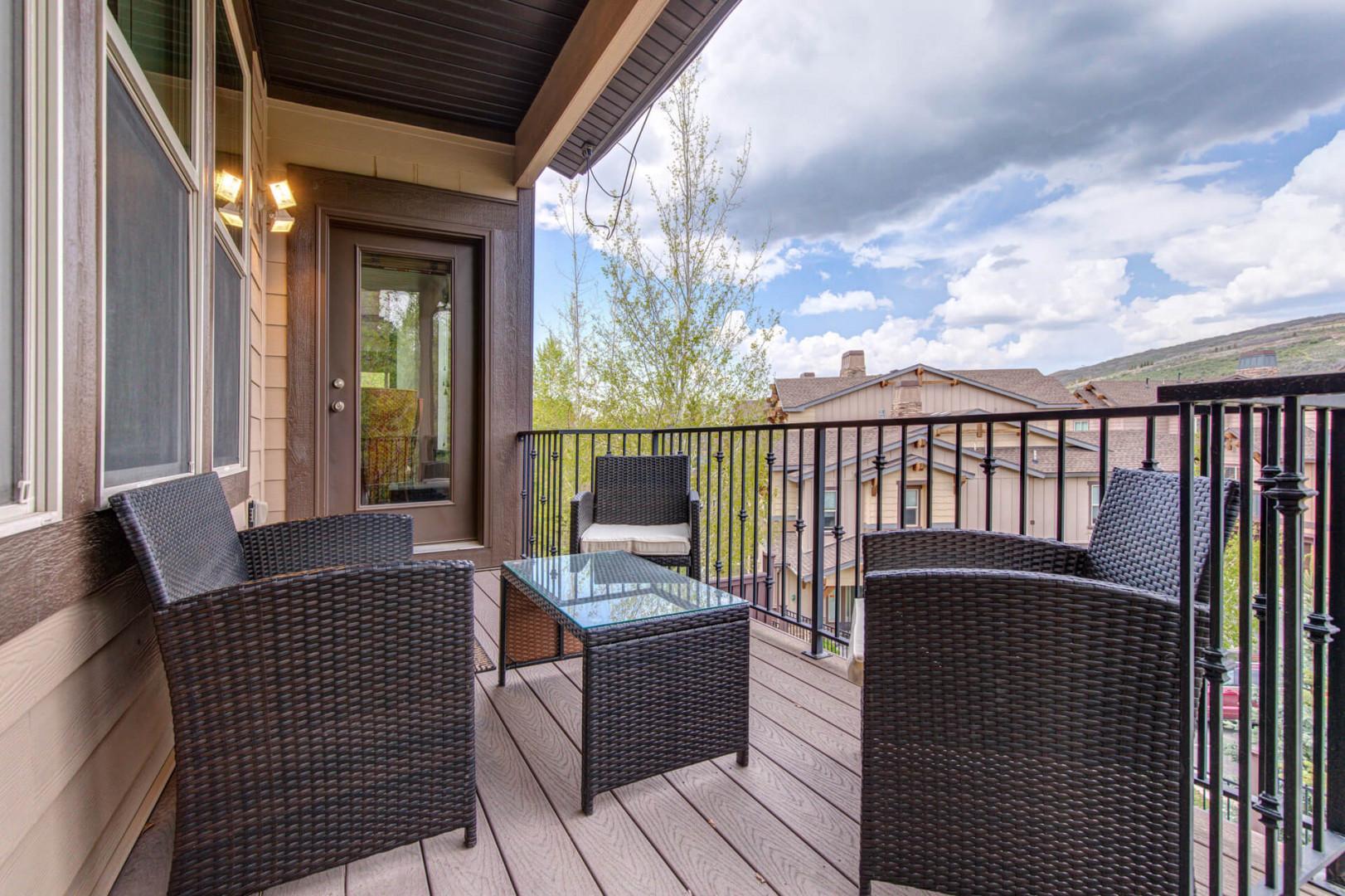 Step outside to enjoy two beautiful patios. The lower patio features a brand-new hot tub, perfect for soaking after a day of skiing or hiking. The upper/main level patio is equipped with chairs and a table, offering a delightful spot to enjoy sunsets and the panoramic views. A gas grill is available for outdoor cooking.