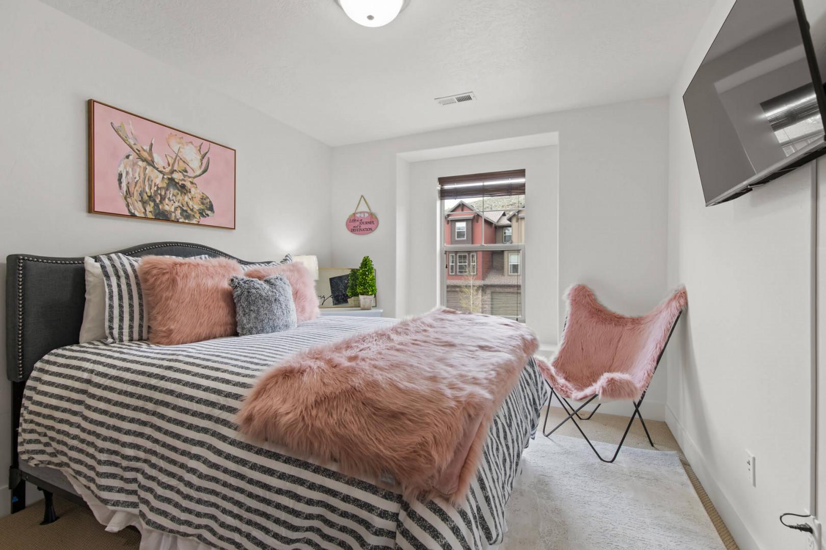 Third Bedroom (Upper Level): Queen-size bed with a Smart TV.