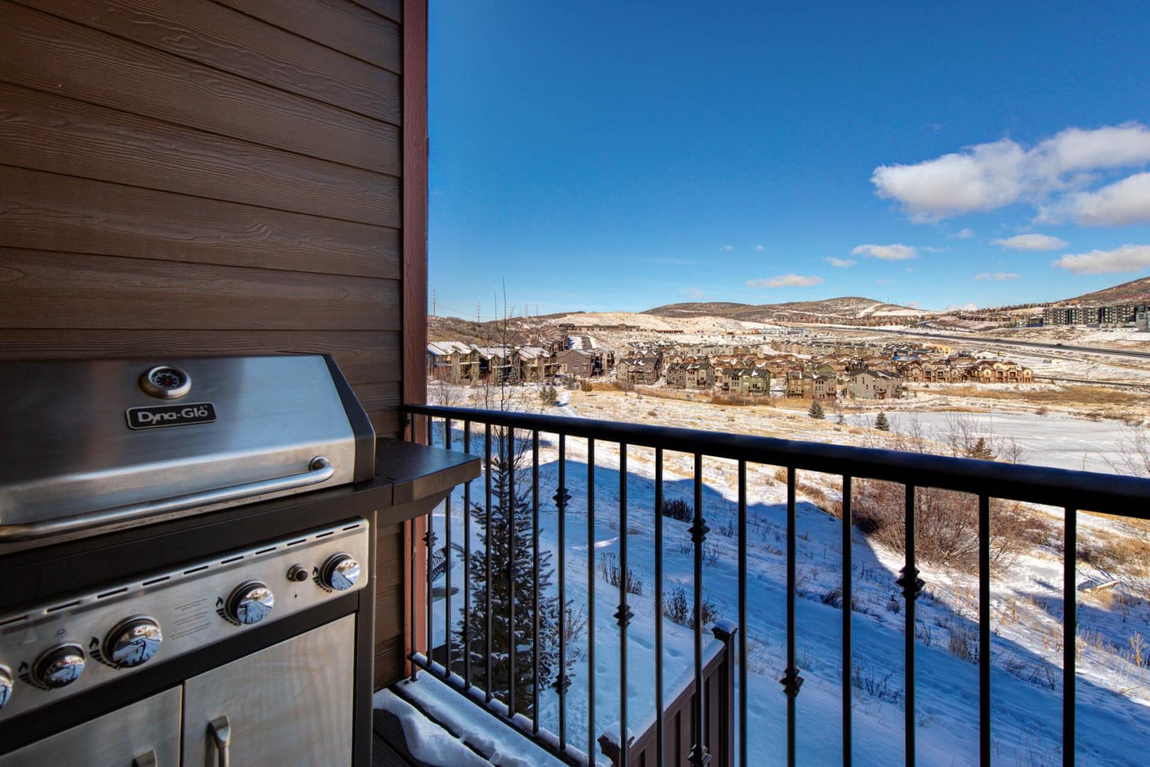 Retreat at Jordanelle 906: Balcony off main-level kitchen with BBQ