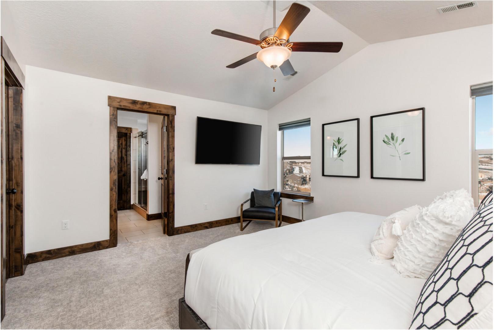 Primary Bedroom (Upstairs): King-size bed with ensuite bathroom
