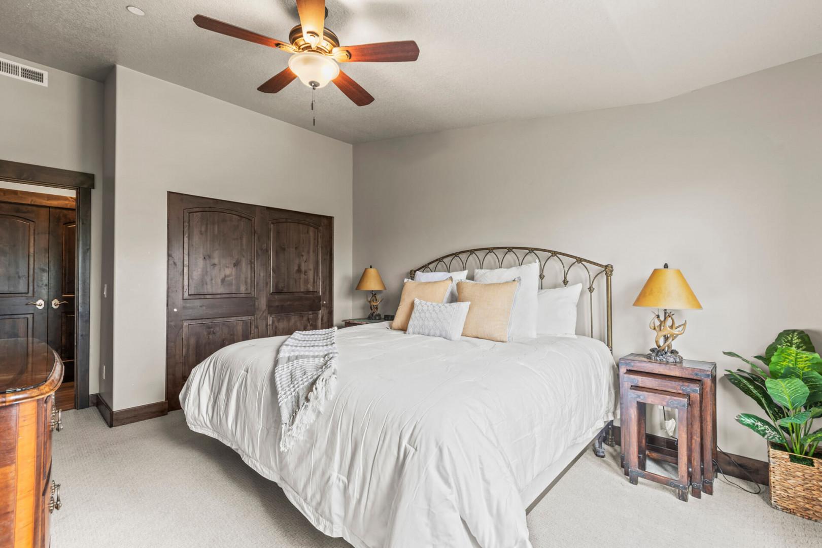 Bedroom 2: King bed with TV and closet